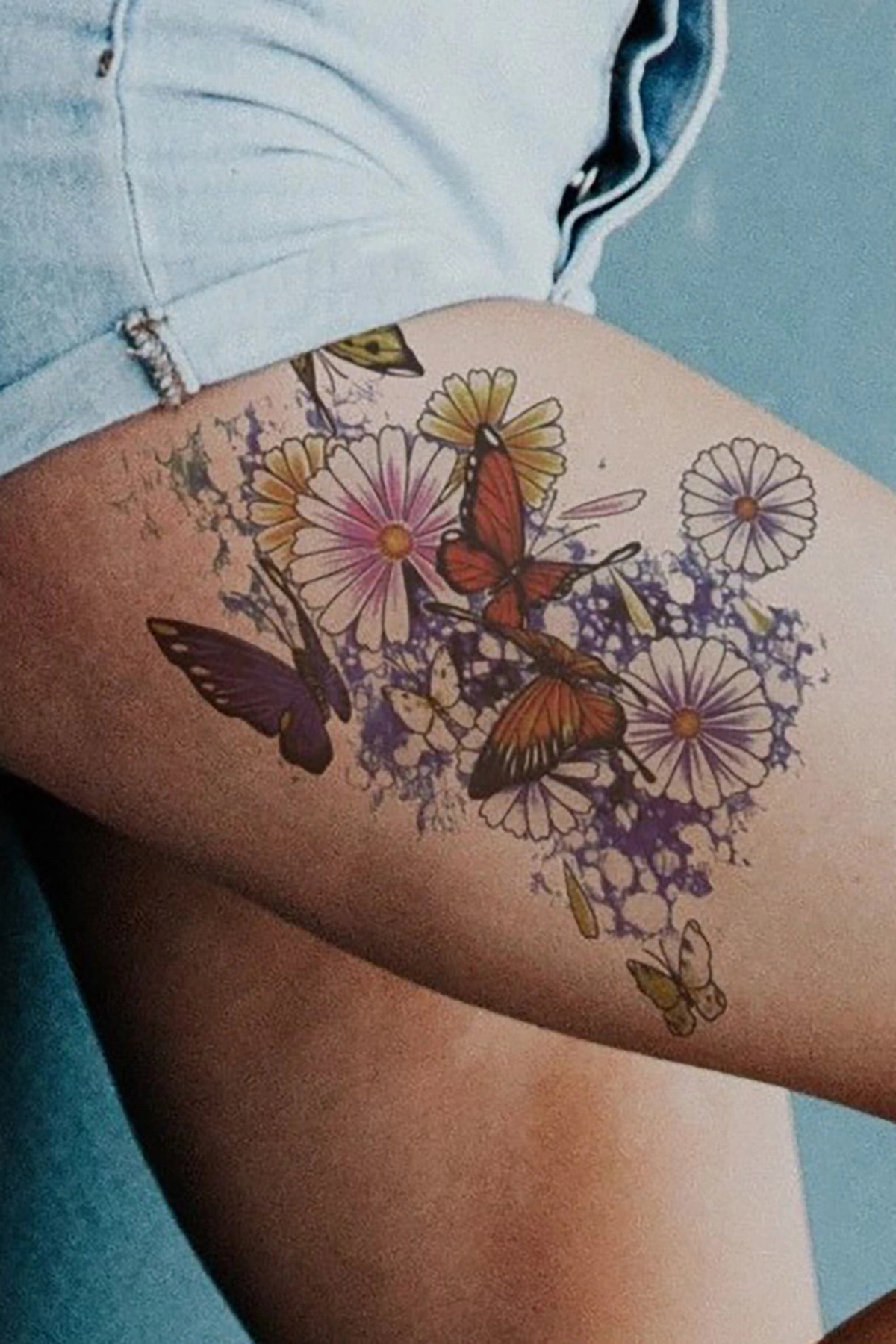 Geçici Çiçek Ve Kelebek Figürlü Dövme Tattoo