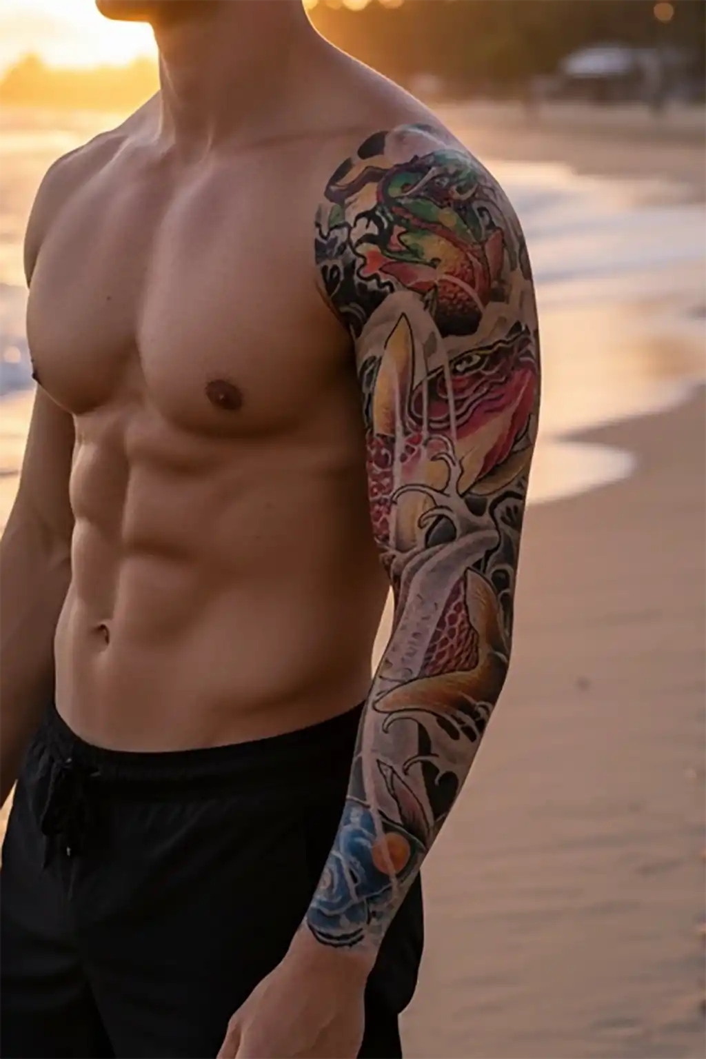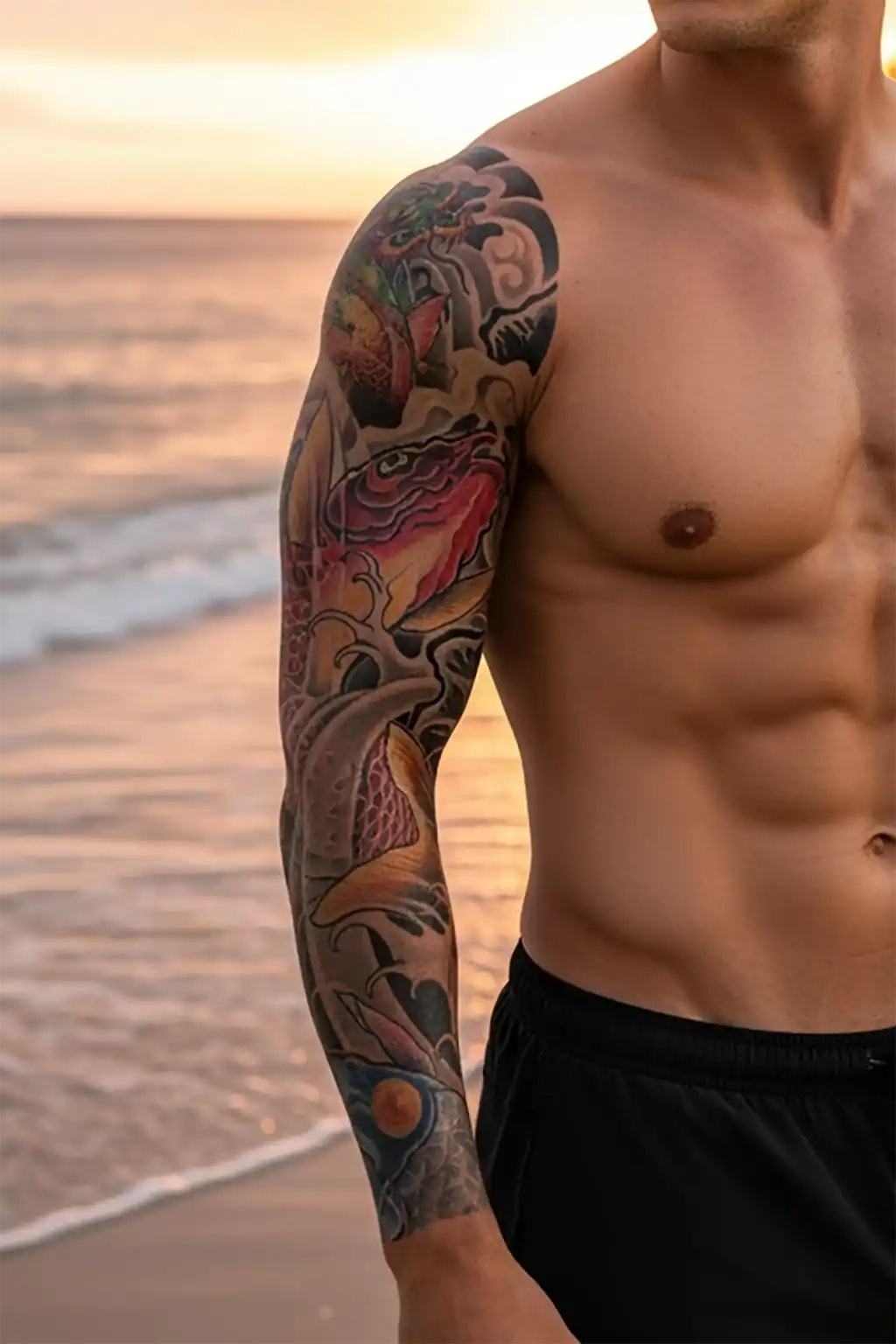 Geçici Ejderha ve Balık Kol Dövmesi