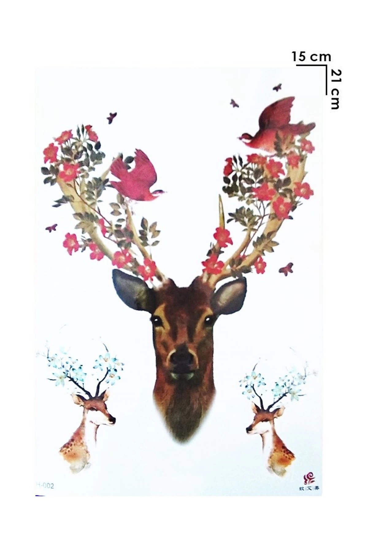 Geçici Geyik ve Çiçek Dövme Tattoo
