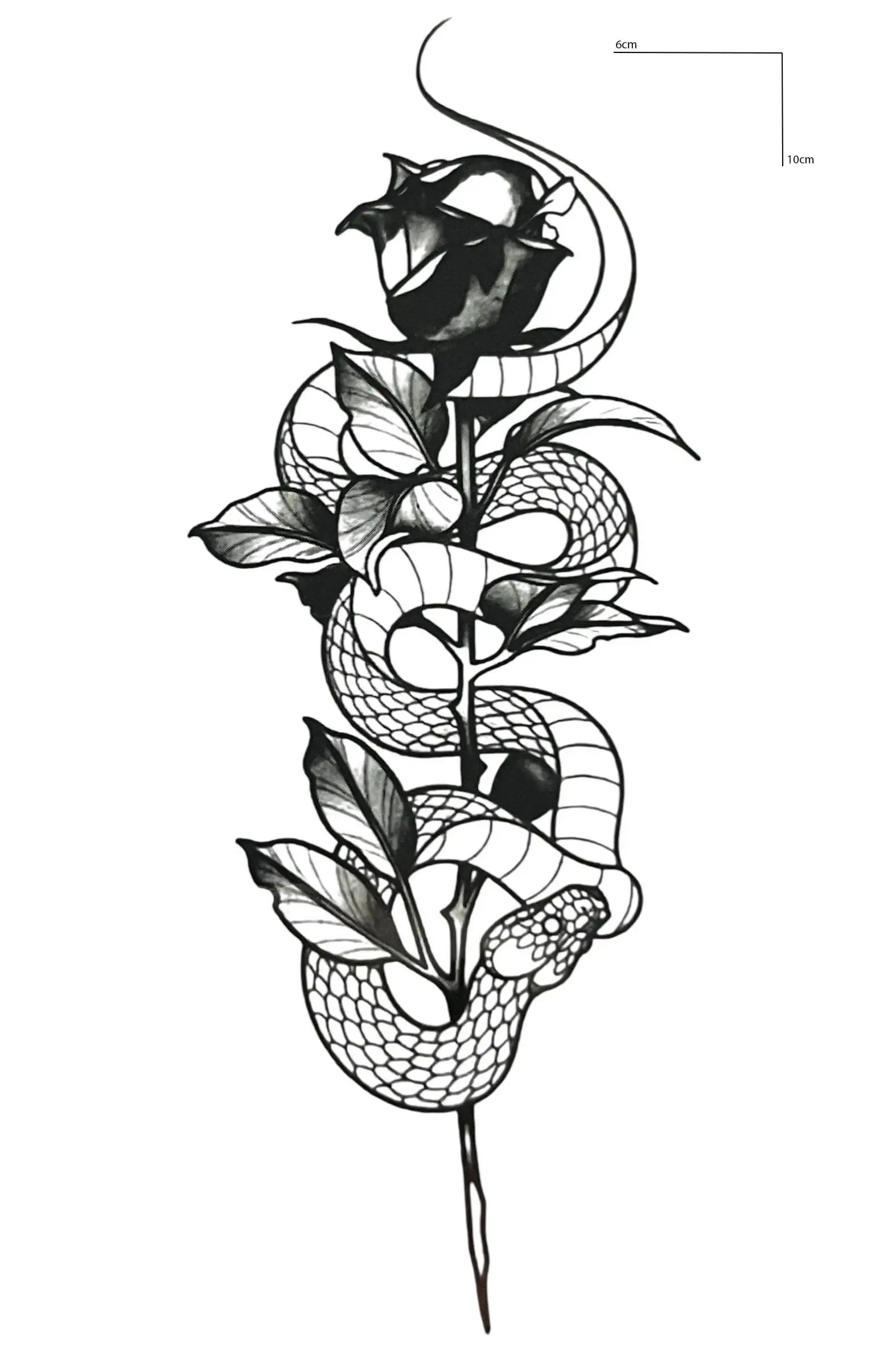 Geçici Gül Ve Yılan Figürlü Mini Dövme Tattoo