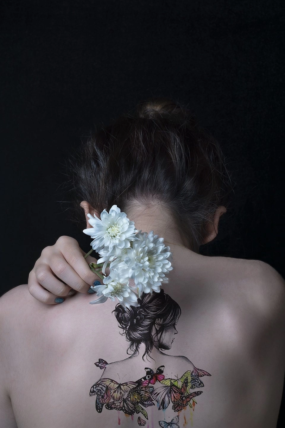 Geçici Kadın ve Kelebek Modelli Dövme Tattoo