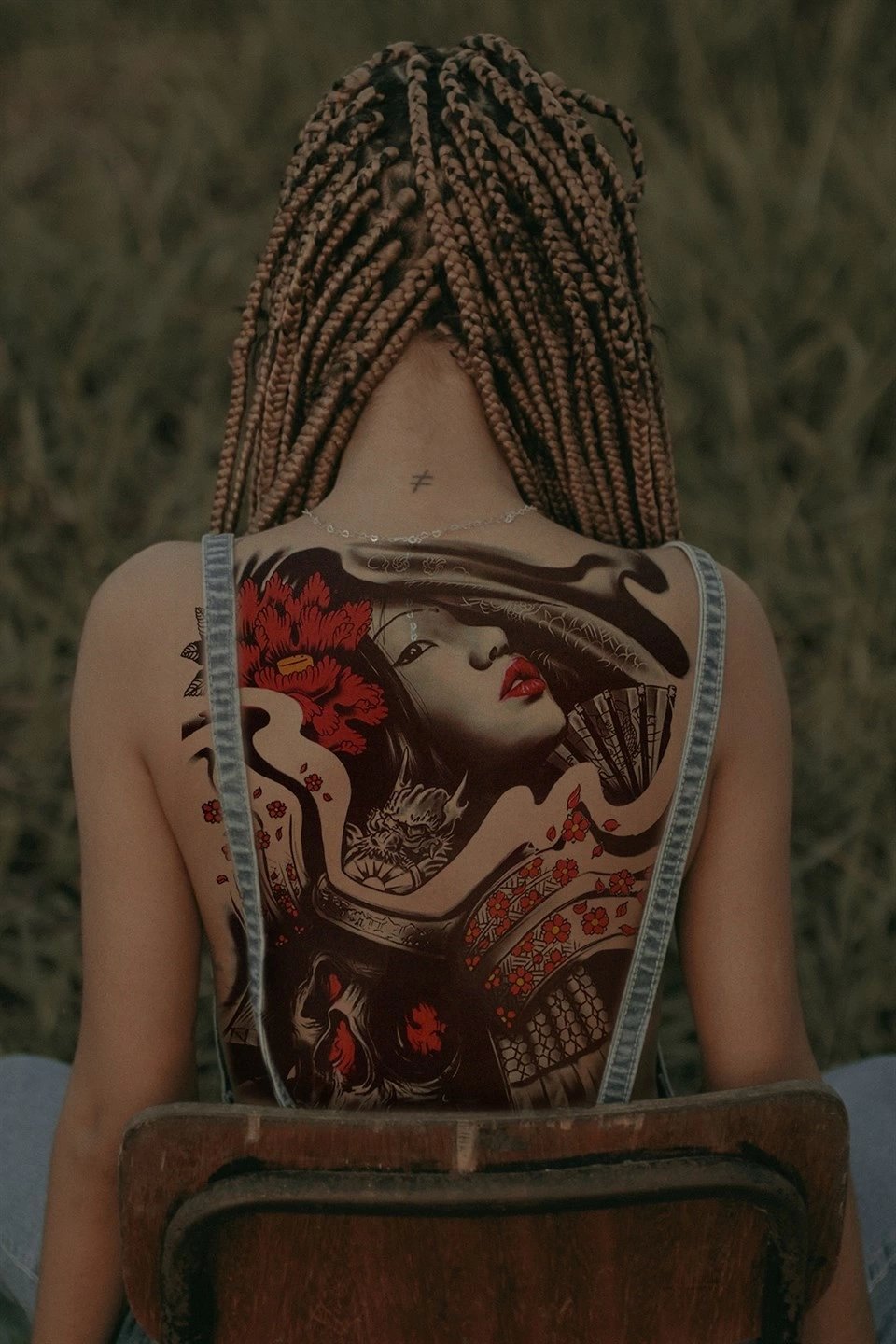 Geçici Kadın ve Kurukafa Modelli Sırt Dövme Tattoo