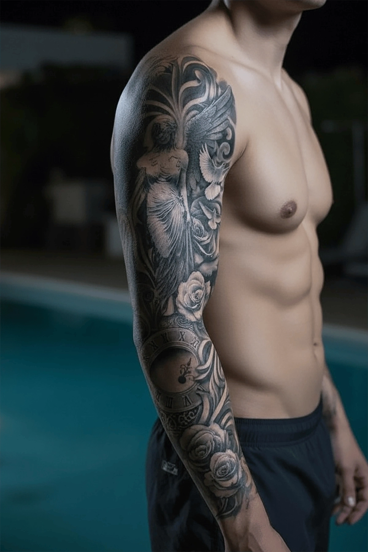 Geçici Kanatlı Melek Ve Çiçek Kol Dövme Tattoo