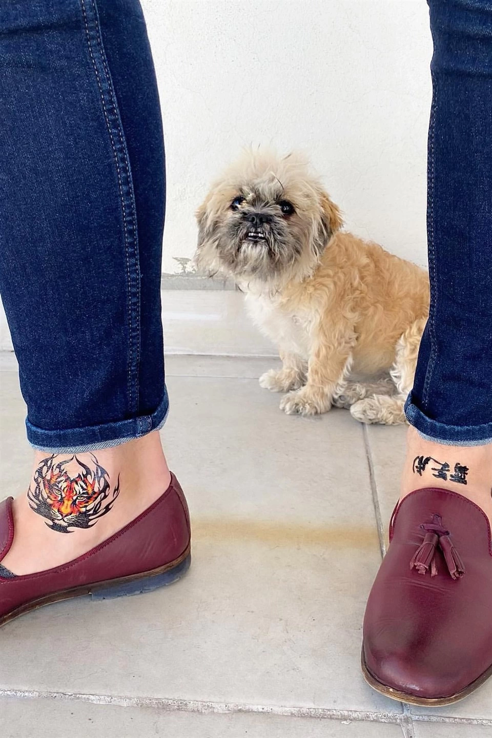 Uygulama yapacağınız bölgenin temiz, kuru, kremsiz ve yağsız olmasına dikkat ediniz. Kıl, tüy gibi dövmenin yapışmasını engelleyici unsur olmadığına emin olun. Dövmenin tam olarak hangi bölgeye uygulayacağının belli olması için renkli kısıma mümkün olan en yakın kısımdan kesin. Üzerindeki jelatini çıkartın ve dövme cildinize bakacak şekilde yapıştırın. Birkaç saniye kâğıdın üzerine ıslak havlu veya ıslak bezle bastırın. Bu arada kağıdı kaydırmamaya dikkat edin. Kâğıdı cildinizden kaldırın. Dövmeniz hazır. Lütfen dövme cildinizde kaldığı sürece ovalamayın. Uygulamanın ardından 20 dk. cildinizi germeyin ve kurumasını bekleyin. Çıkarmak isterseniz bebek yağı, zeytinyağı veya ıslak mendillerle ovalayın. Güle Güle Kullanın...
