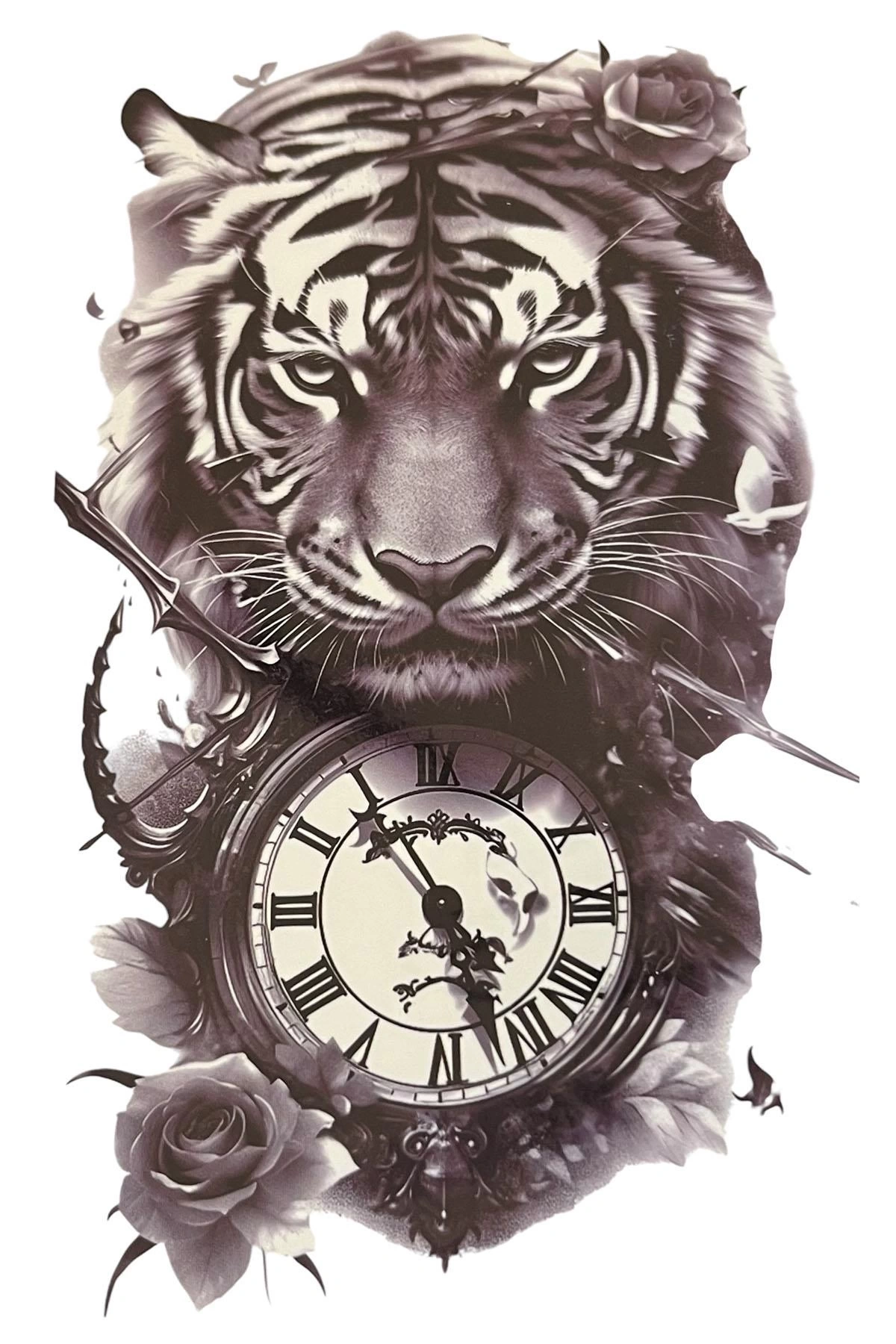 Geçici Kaplan Ve Saat Figürlü Dövme Tattoo