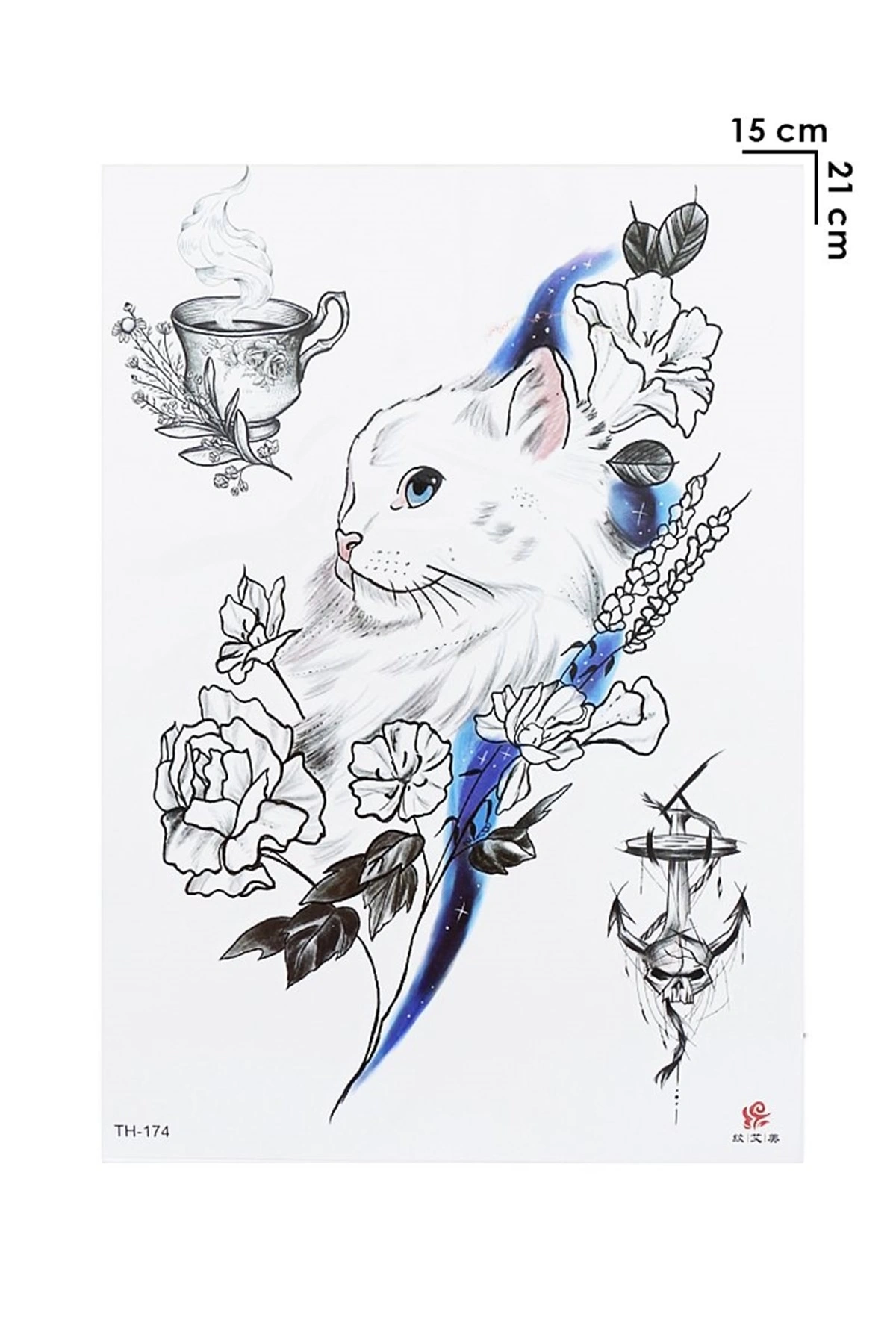 Geçici Kedi, Fincan ve Çapa Dövme Tattoo