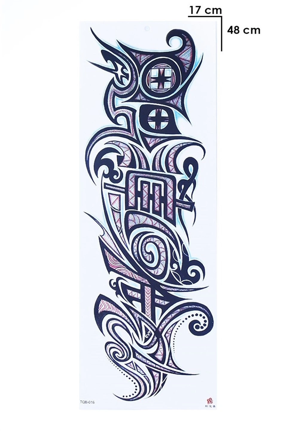 Boyut : 17*48 cm. Ürünün boyutuna göre vücudunuzda istediğiniz bölgeye uygulayabilirsiniz. Ağırlık : 22.2 gr. Doğal Naturel Görünümlü, Ortalama 2 Hafta Kalıcı Kol Dövmesi Kalıcılık süresi cildinizin yağlı ve kuru olmasına göre değişkenlik göstermektedir. Paket içeriği görselde görünenin birebir aynısıdır. **Nemli, güneş ışığına veya klimaya maruz kalan açılmış paketler bozulma yapmaktadır. Dövme yapılışı Uygulama yapacağınız bölgenin temiz, kuru, kremsiz ve yağsız olmasına dikkat ediniz. Kıl, tüy gibi dövmenin yapışmasını engelleyici unsur olmadığına emin olun. Dövmenin tam olarak hangi bölgeye uygulayacağının belli olması için renkli kısıma mümkün olan en yakın kısımdan kesin. Üzerindeki jelatini çıkartın ve dövme cildinize bakacak şekilde yapıştırın. Birkaç saniye kâğıdın üzerine ıslak havlu veya ıslak bezle bastırın. Bu arada kağıdı kaydırmamaya dikkat edin. Kâğıdı cildinizden kaldırın. Dövmeniz hazır. Lütfen dövme cildinizde kaldığı sürece ovalamayın. Uygulamanın ardından 20 dk. cildinizi germeyin ve kurumasını bekleyin. Çıkarmak isterseniz bebek yağı, zeytinyağı veya ıslak mendillerle ovalayın. Güle Güle Kullanın...