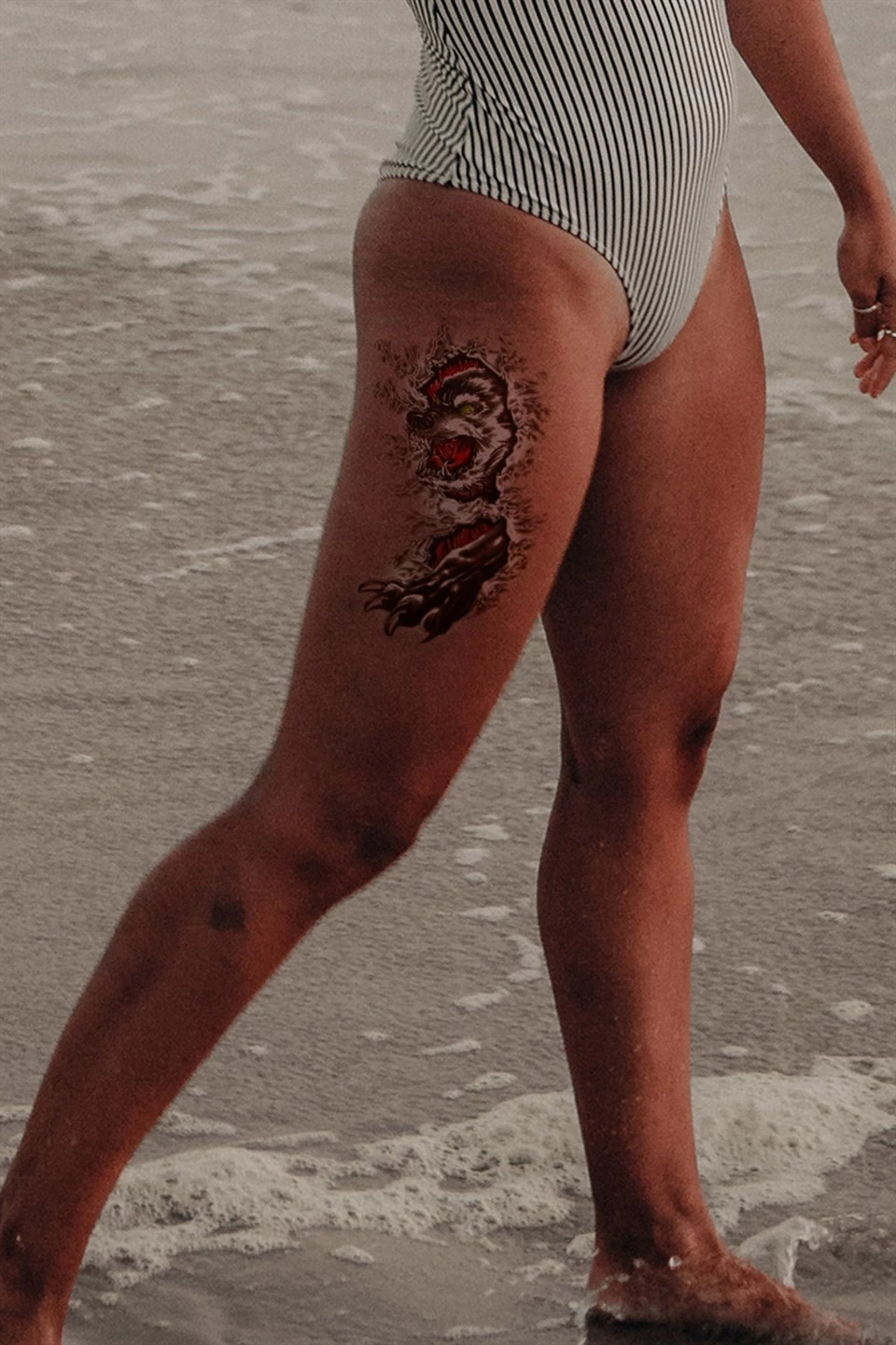 Boyut : 15*21 cm. Ürünün boyutuna göre vücudunuzda istediğiniz bölgeye uygulayabilirsiniz. Ağırlık : 9.4 gr. Doğal Naturel Görünümlü, Ortalama 2 Hafta Kalıcı Kalıcılık süresi cildinizin yağlı ve kuru olmasına göre değişkenlik göstermektedir. Paket içeriği görselde görünenin birebir aynısıdır. **Nemli, güneş ışığına veya klimaya maruz kalan açılmış paketler bozulma yapmaktadır. Dövme yapılışı Uygulama yapacağınız bölgenin temiz, kuru, kremsiz ve yağsız olmasına dikkat ediniz. Kıl, tüy gibi dövmenin yapışmasını engelleyici unsur olmadığına emin olun. Dövmenin tam olarak hangi bölgeye uygulayacağının belli olması için renkli kısıma mümkün olan en yakın kısımdan kesin. Üzerindeki jelatini çıkartın ve dövme cildinize bakacak şekilde yapıştırın. Birkaç saniye kâğıdın üzerine ıslak havlu veya ıslak bezle bastırın. Bu arada kağıdı kaydırmamaya dikkat edin. Kâğıdı cildinizden kaldırın. Dövmeniz hazır. Lütfen dövme cildinizde kaldığı sürece ovalamayın. Uygulamanın ardından 20 dk. cildinizi germeyin ve kurumasını bekleyin. Çıkarmak isterseniz bebek yağı, zeytinyağı veya ıslak mendillerle ovalayın. Güle Güle Kullanın...