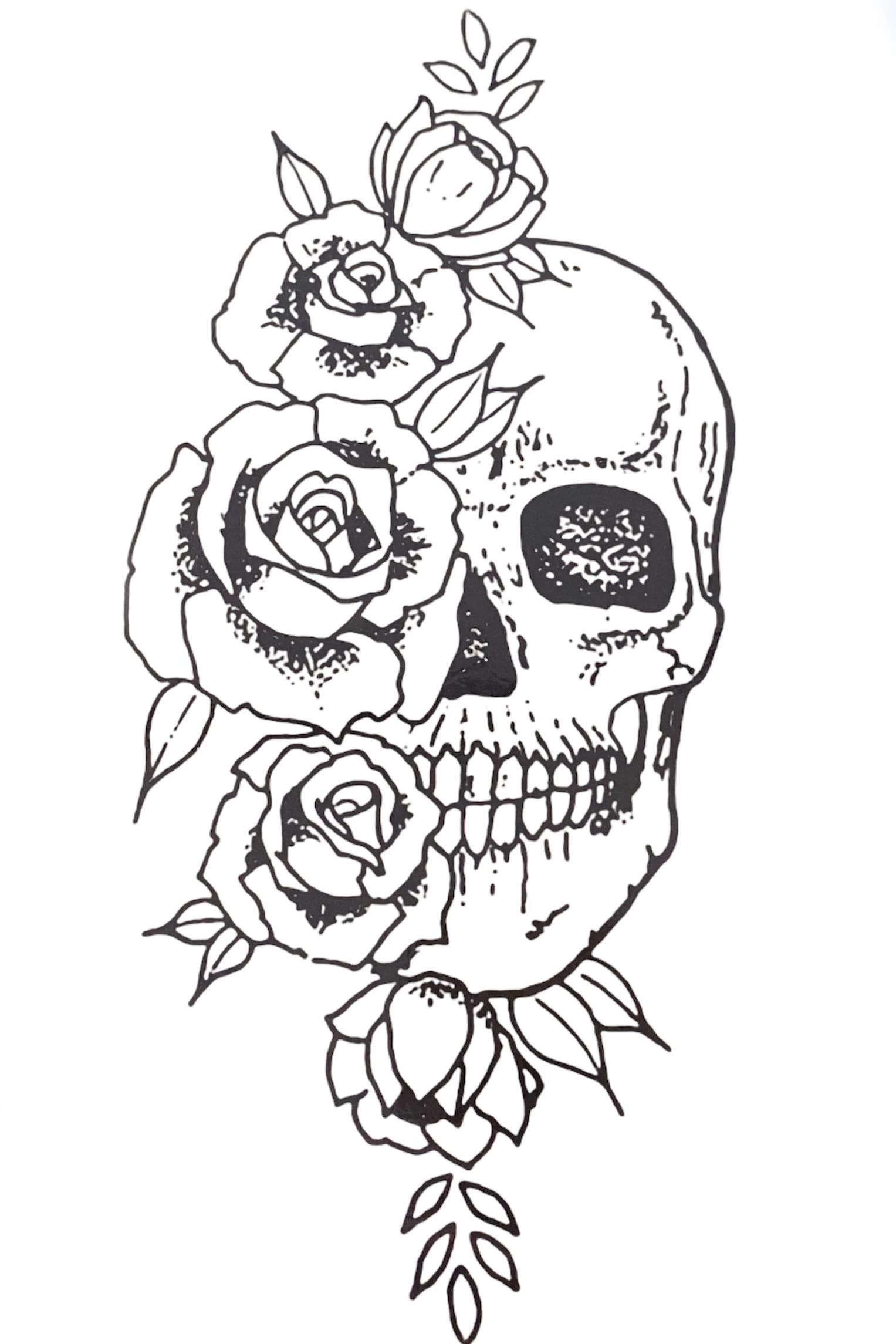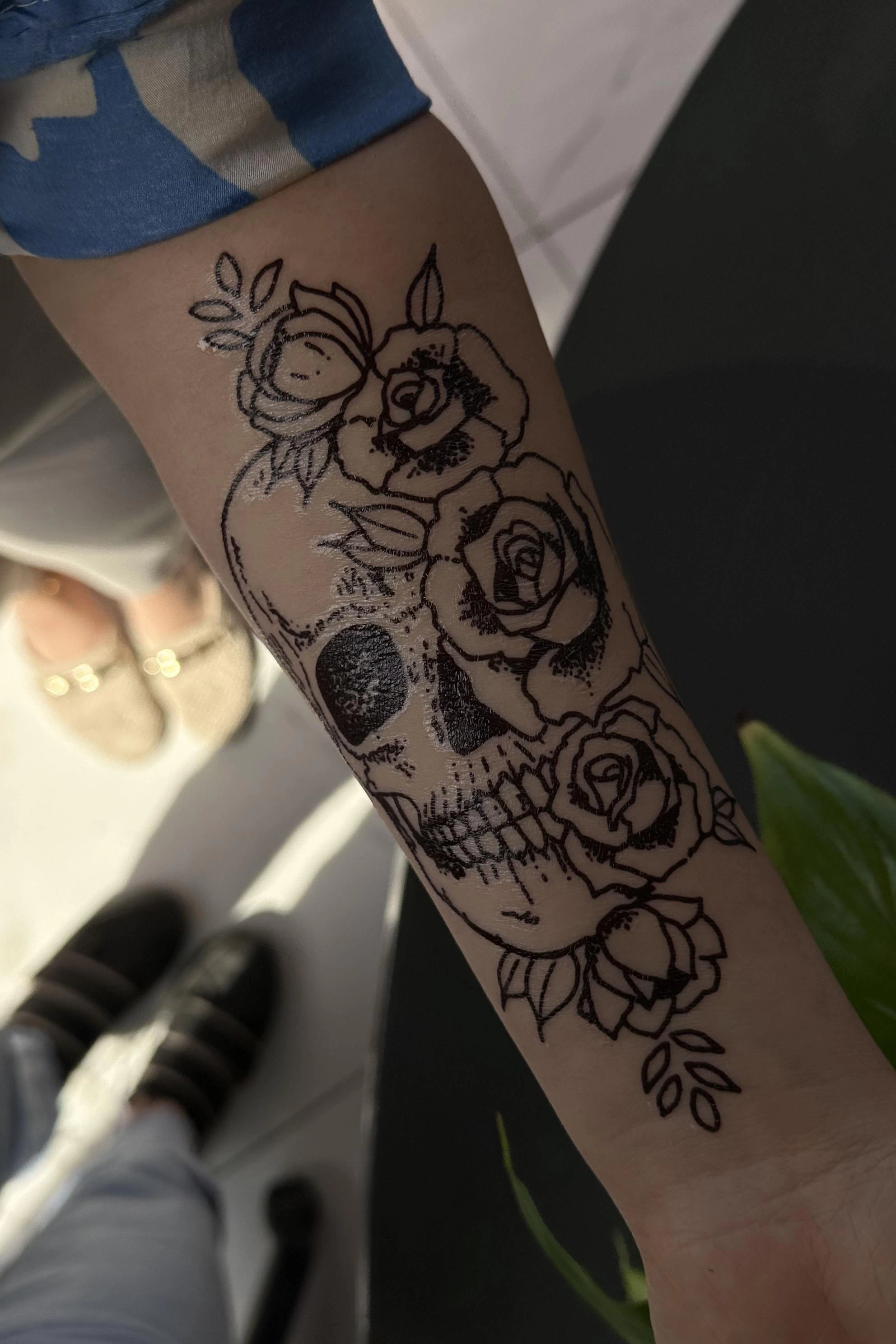 Geçici Kuru Kafa Ve Gül Figürlü Dövme Tattoo