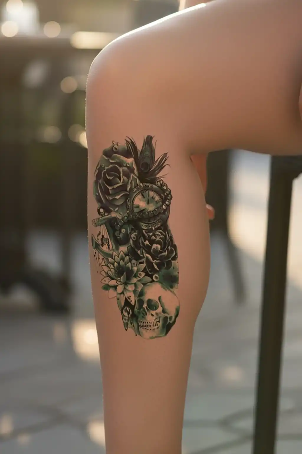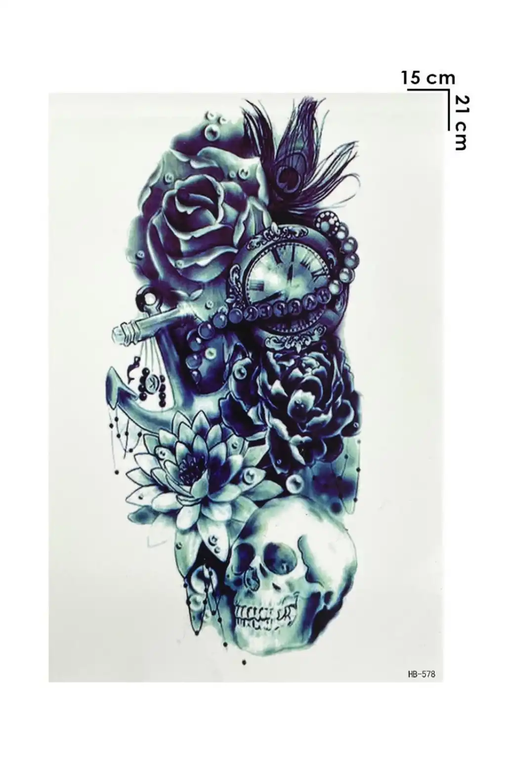 Boyut : 15*21 cm. Ürünün boyutuna göre vücudunuzda istediğiniz bölgeye uygulayabilirsiniz. Ağırlık : 9.4 gr. Doğal Naturel Görünümlü, Ortalama 2 Hafta Kalıcı Kalıcılık süresi cildinizin yağlı ve kuru olmasına göre değişkenlik göstermektedir. Paket içeriği görselde görünenin birebir aynısıdır. **Nemli, güneş ışığına veya klimaya maruz kalan açılmış paketler bozulma yapmaktadır. Dövme yapılışı Uygulama yapacağınız bölgenin temiz, kuru, kremsiz ve yağsız olmasına dikkat ediniz. Kıl, tüy gibi dövmenin yapışmasını engelleyici unsur olmadığına emin olun. Dövmenin tam olarak hangi bölgeye uygulayacağının belli olması için renkli kısıma mümkün olan en yakın kısımdan kesin. Üzerindeki jelatini çıkartın ve dövme cildinize bakacak şekilde yapıştırın. Birkaç saniye kâğıdın üzerine ıslak havlu veya ıslak bezle bastırın. Bu arada kağıdı kaydırmamaya dikkat edin. Kâğıdı cildinizden kaldırın. Dövmeniz hazır. Lütfen dövme cildinizde kaldığı sürece ovalamayın. Uygulamanın ardından 20 dk. cildinizi germeyin ve kurumasını bekleyin. Çıkarmak isterseniz bebek yağı, zeytinyağı veya ıslak mendillerle ovalayın. Güle Güle Kullanın...