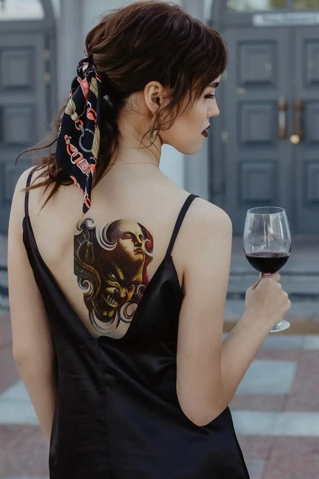 Boyut : 15*21cm. Ürünün boyutuna göre vücudunuzda istediğiniz bölgeye uygulayabilirsiniz. Ağırlık : 9 gr. Doğal Naturel Görünümlü, Ortalama 2 Hafta Kalıcı Kol Dövmesi Kalıcılık süresi cildinizin yağlı ve kuru olmasına göre değişkenlik göstermektedir. Paket içeriği görselde görünenin birebir aynısıdır. **Nemli, güneş ışığına veya klimaya maruz kalan açılmış paketler bozulma yapmaktadır. Dövme yapılışı Uygulama yapacağınız bölgenin temiz, kuru, kremsiz ve yağsız olmasına dikkat ediniz. Kıl, tüy gibi dövmenin yapışmasını engelleyici unsur olmadığına emin olun. Dövmenin tam olarak hangi bölgeye uygulayacağının belli olması için renkli kısıma mümkün olan en yakın kısımdan kesin. Üzerindeki jelatini çıkartın ve dövme cildinize bakacak şekilde yapıştırın. Birkaç saniye kâğıdın üzerine ıslak havlu veya ıslak bezle bastırın. Bu arada kağıdı kaydırmamaya dikkat edin. Kâğıdı cildinizden kaldırın. Dövmeniz hazır. Lütfen dövme cildinizde kaldığı sürece ovalamayın. Uygulamanın ardından 20 dk. cildinizi germeyin ve kurumasını bekleyin. Çıkarmak isterseniz bebek yağı, zeytinyağı veya ıslak mendillerle ovalayın. Güle Güle Kullanın...
