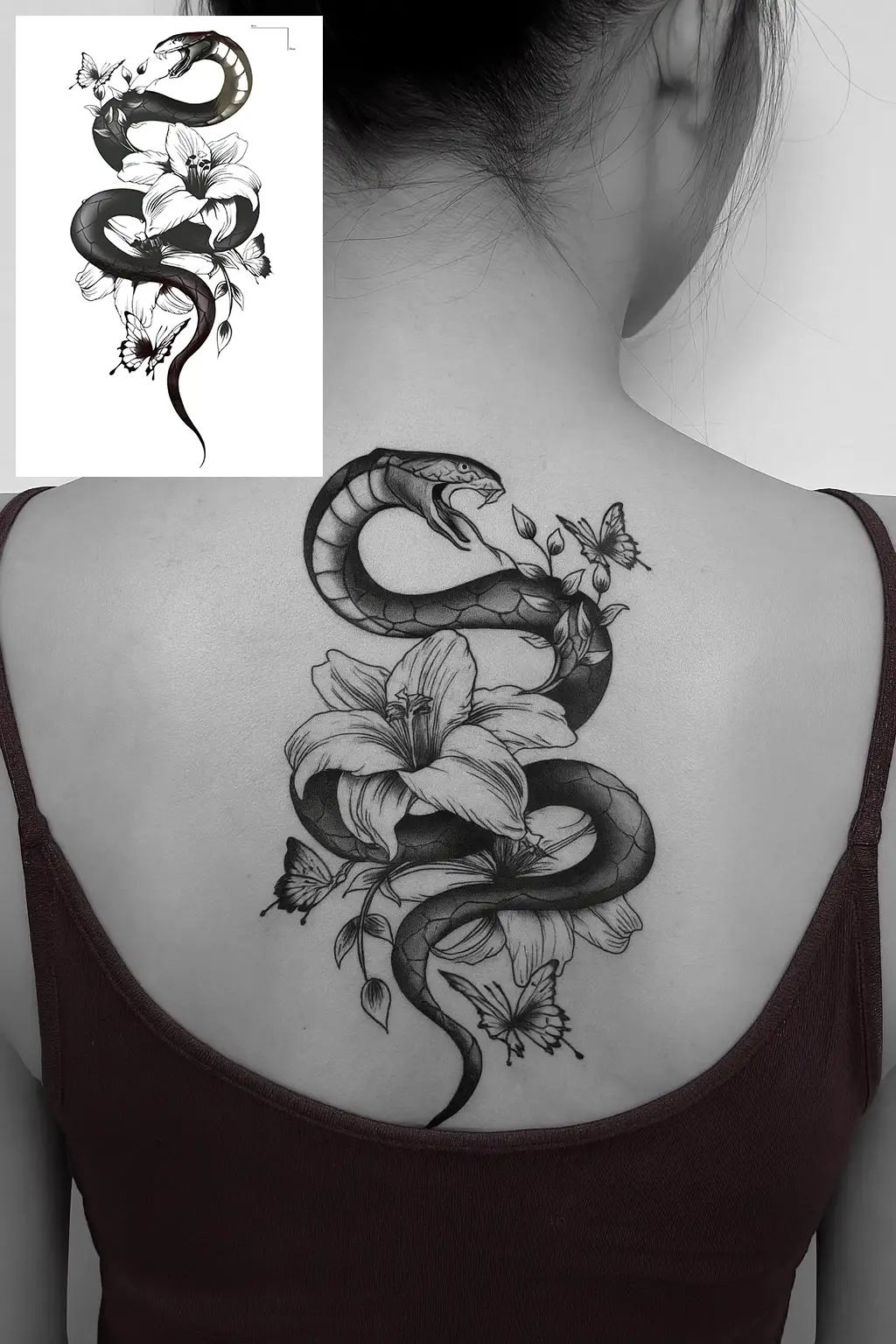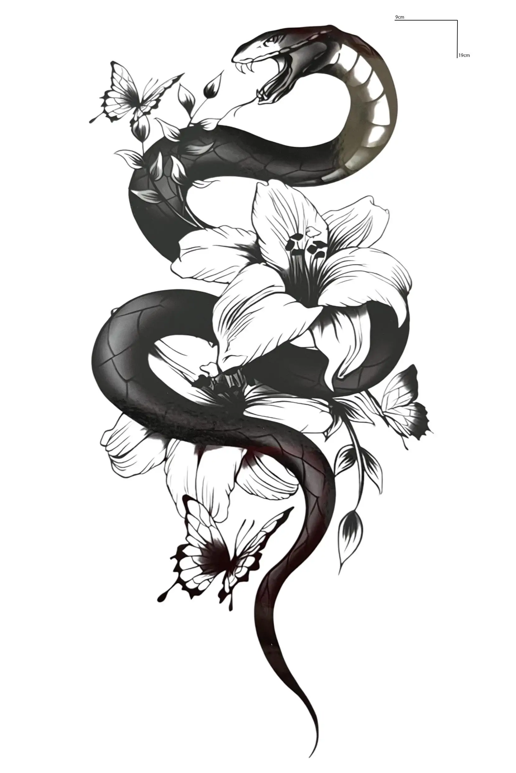 Geçici Yılan Ve Çiçek Figürlü Dövme Tattoo