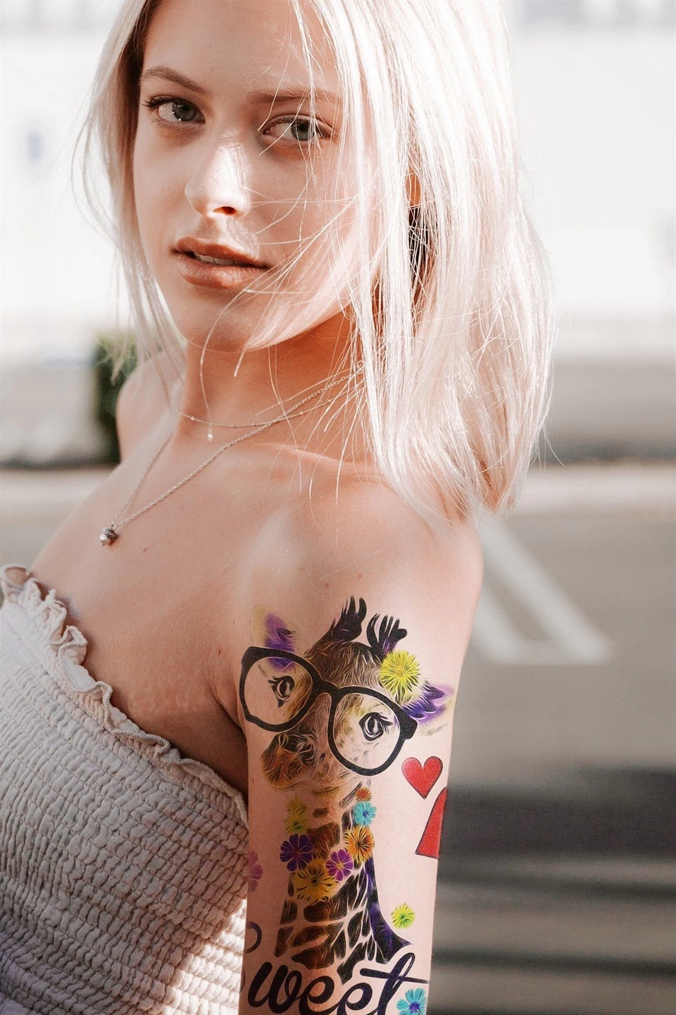 Geçici Zürafa, Kalp, Yazılı Dövme Tattoo