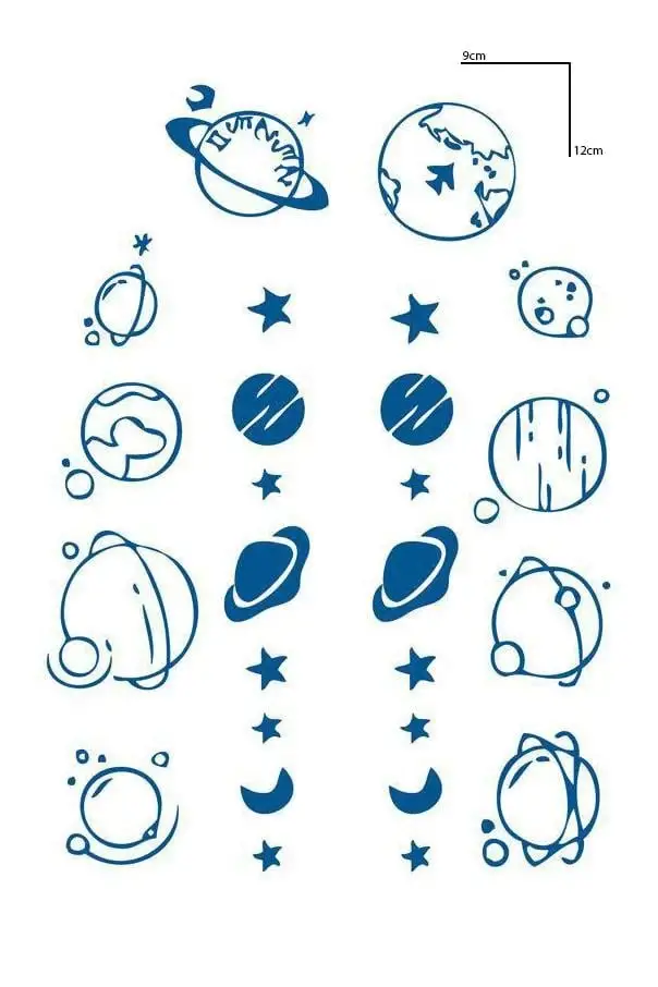 Gezegen Figürlü 12 Saat Sonra Kararan Geçici Dövme Tattoo