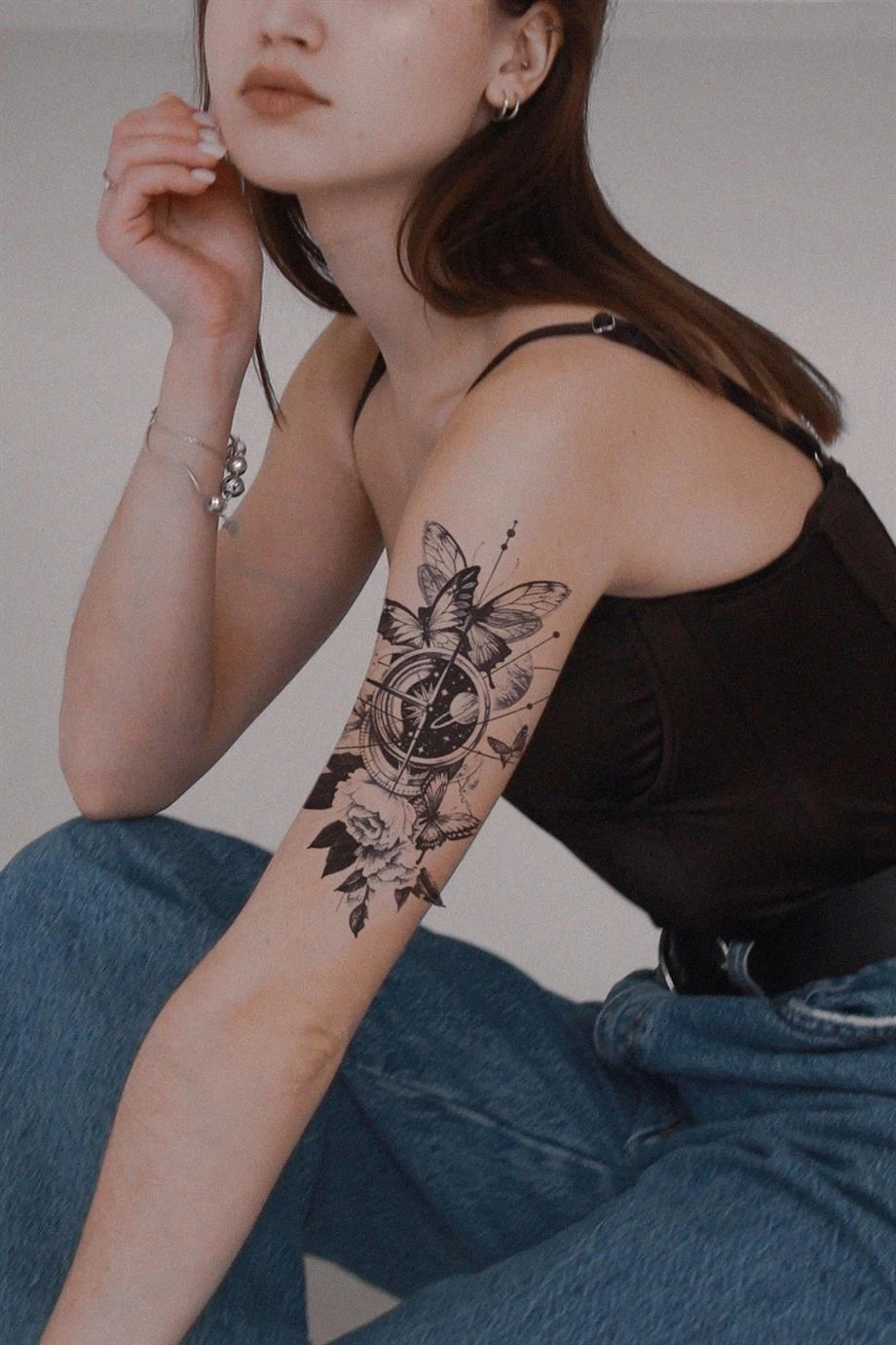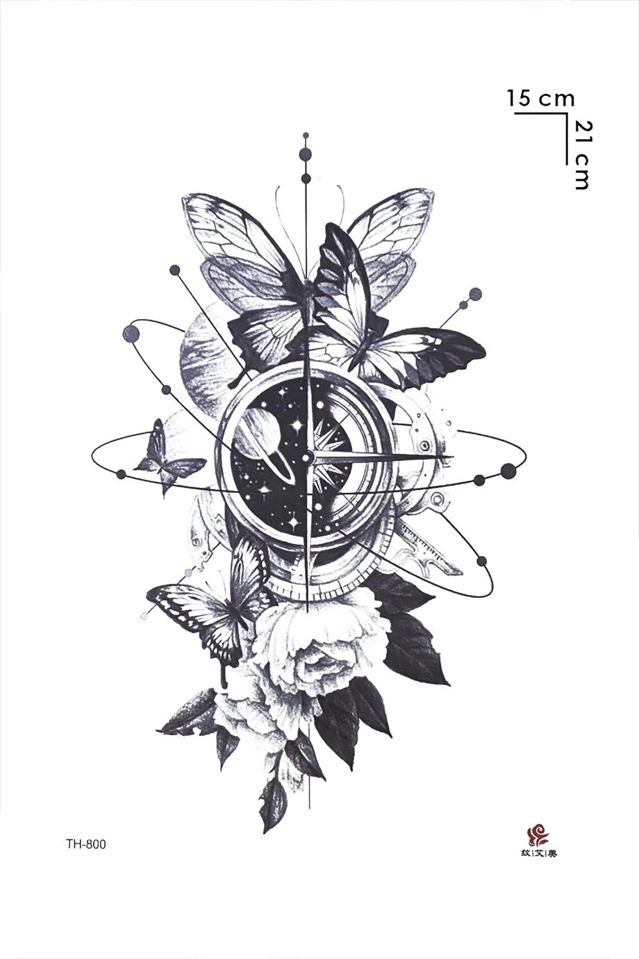 Gezegen Kelebek ve Çiçek Geçici Dövme Tattoo