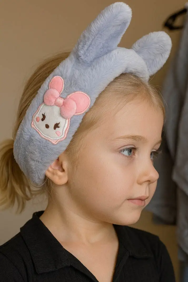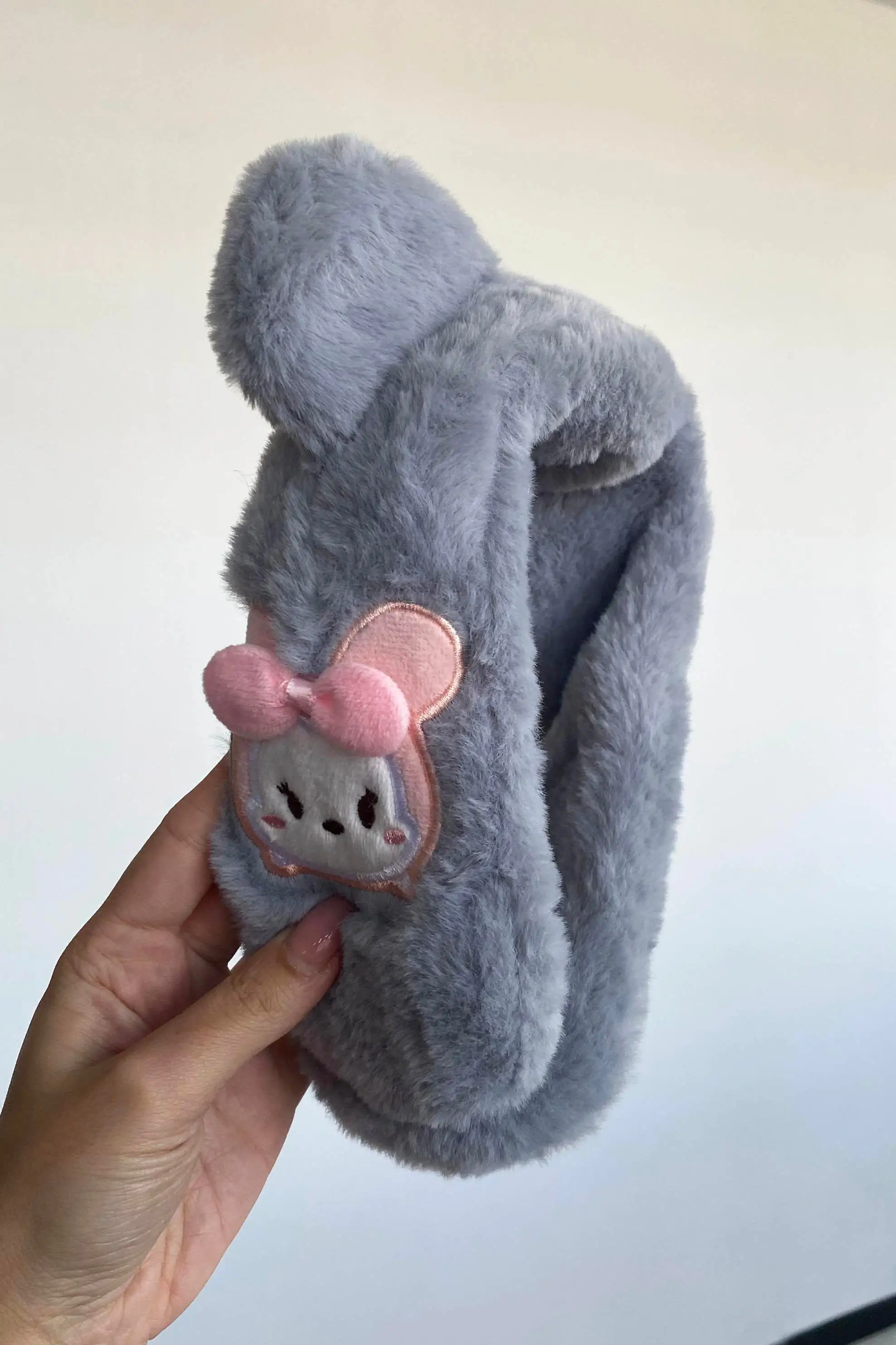 Gri Renk Ayıcık Figürlü Çocuk Peluş Kulaklık