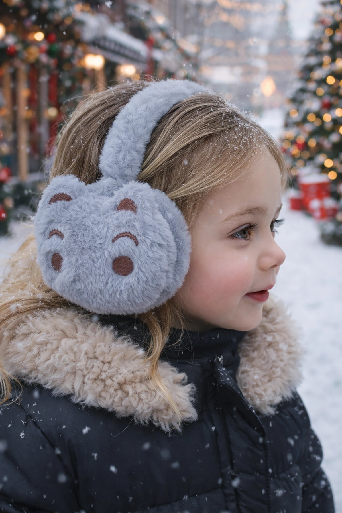 Gri Renk Ayıcık Figürlü Peluş Kulaklık