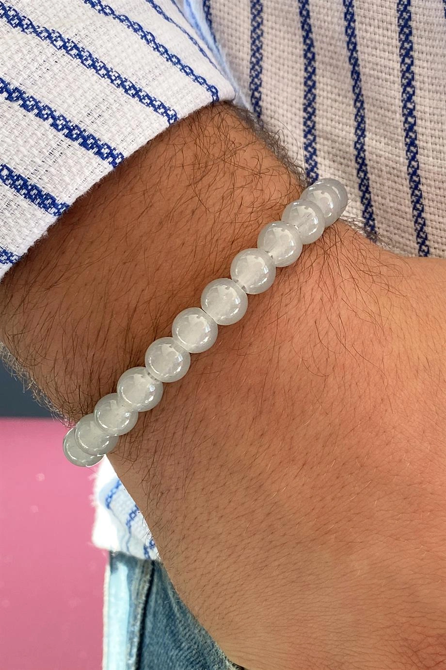 Gri Renk Boncuk detaylı Erkek Bileklik