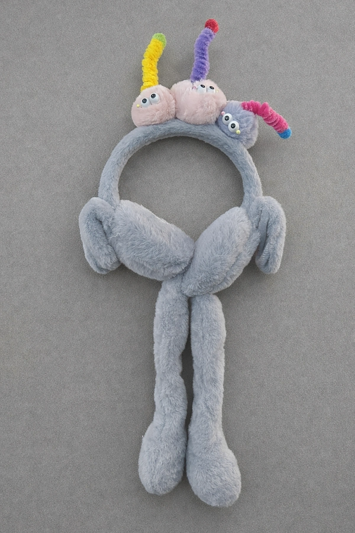Gri Renk Canavar Figürlü Kulakları Oynayan Peluş Kulaklık
