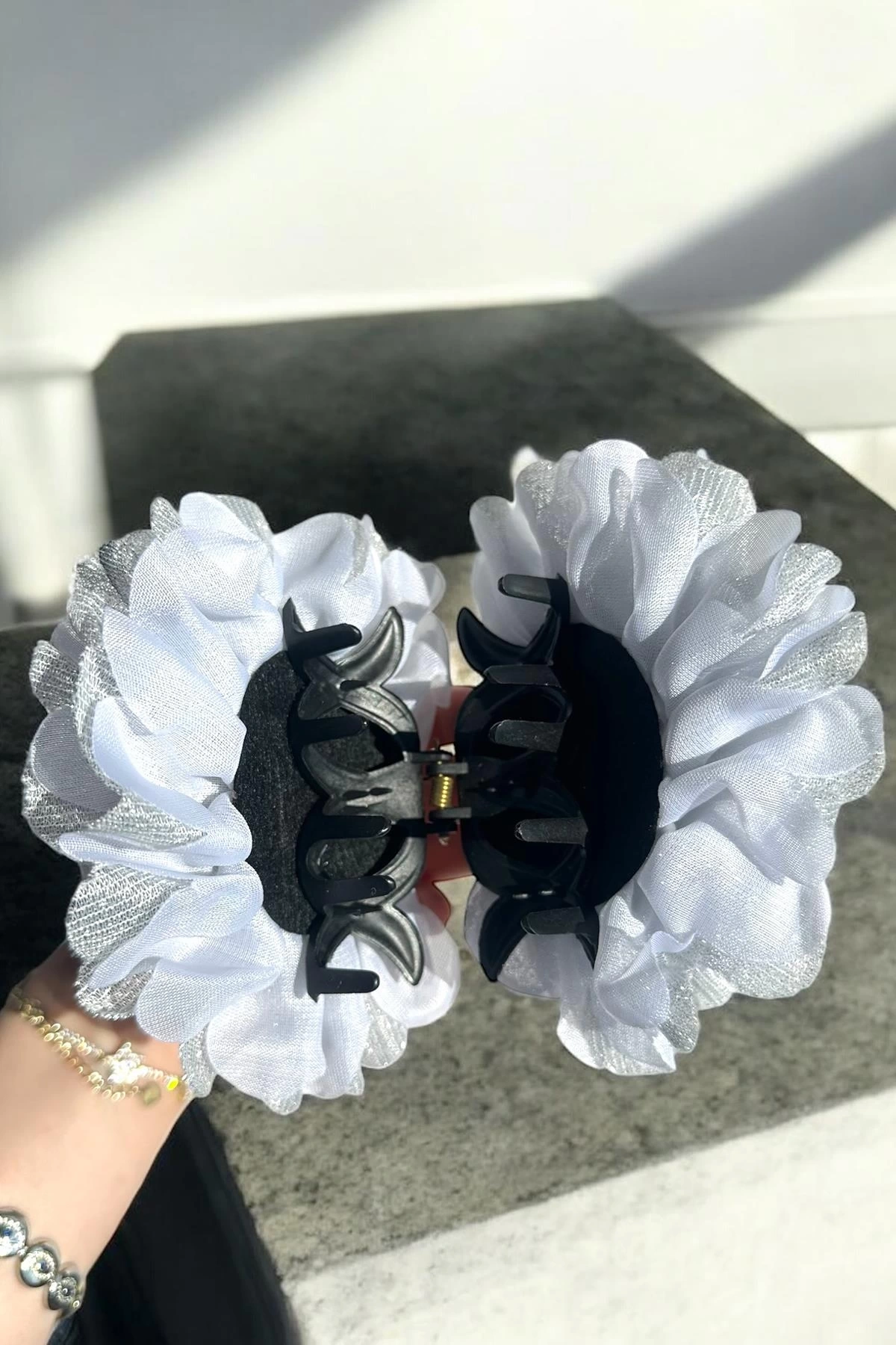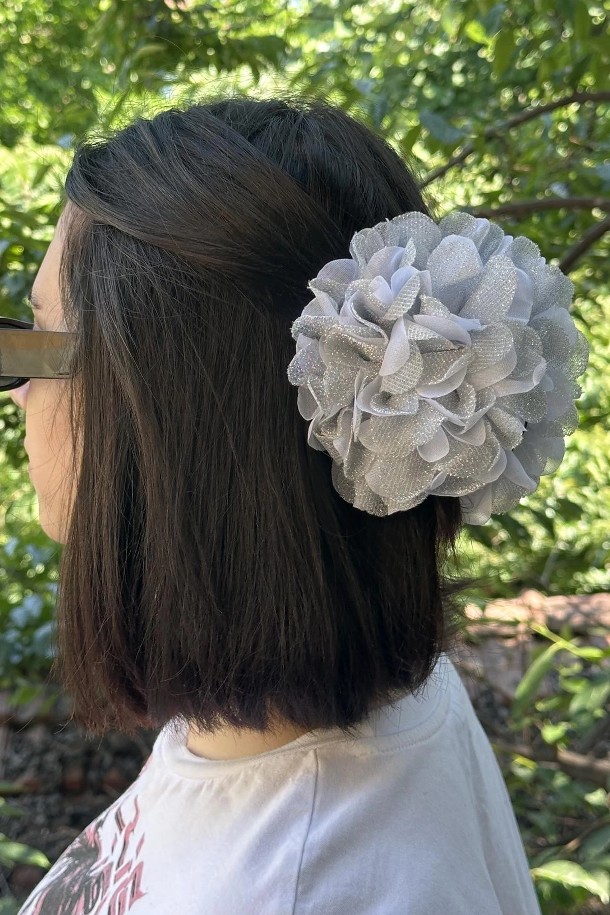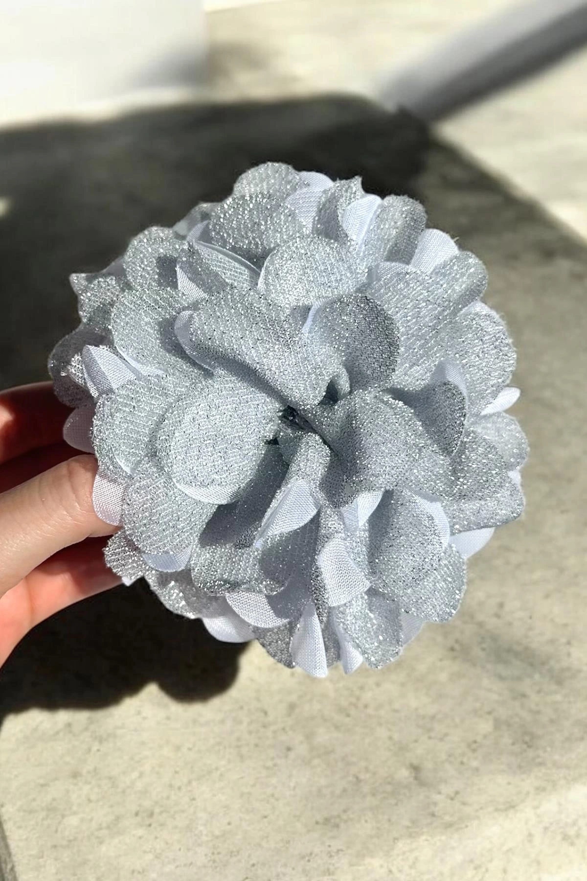 Gri Renk Çiçek Figürlü Sim Detaylı Mandal Toka