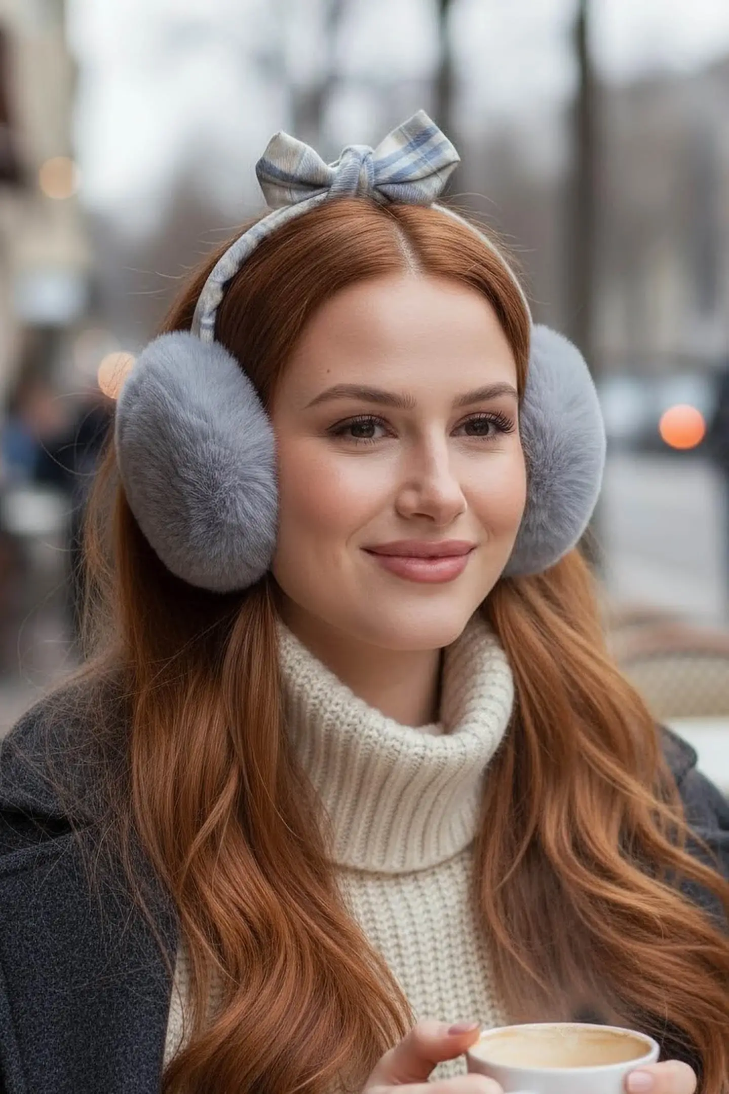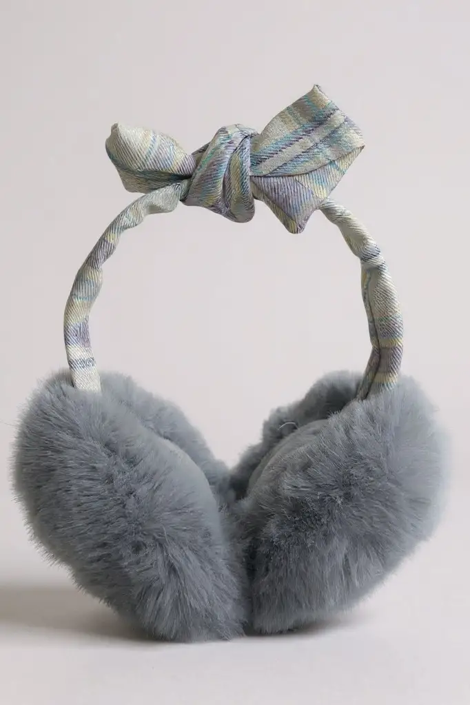 Gri Renk Ekose Desenli Peluş Kulaklık