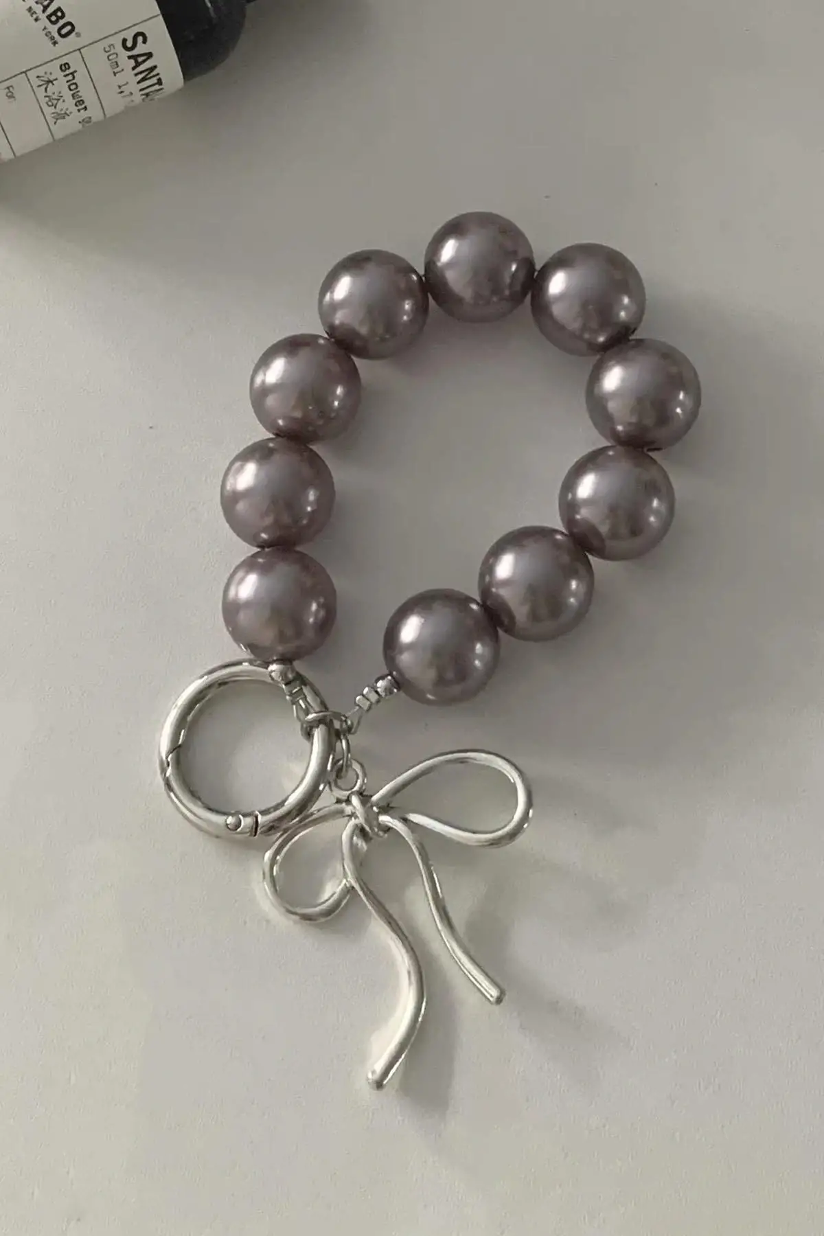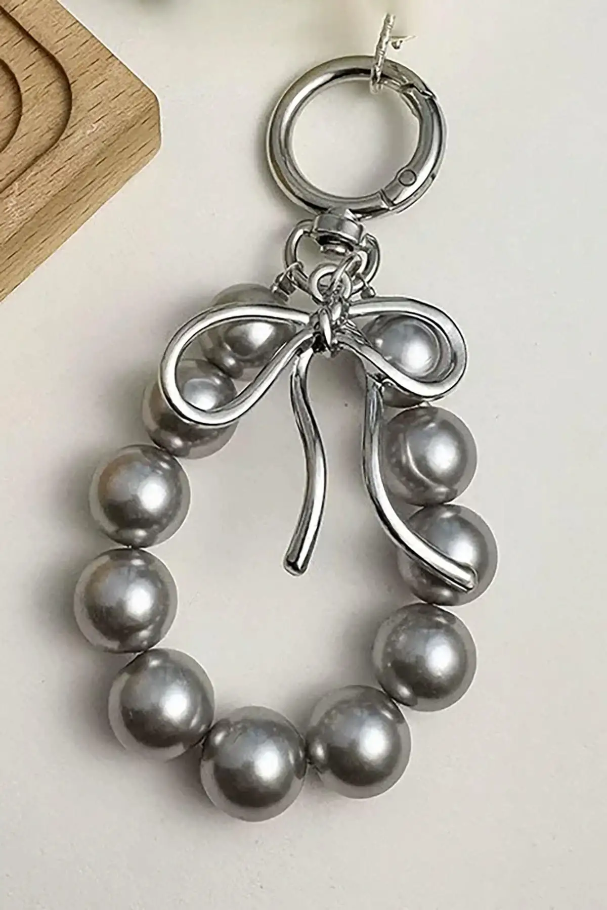 Gri Renk İnci Detaylı Çanta Charm/ Anahtarlık