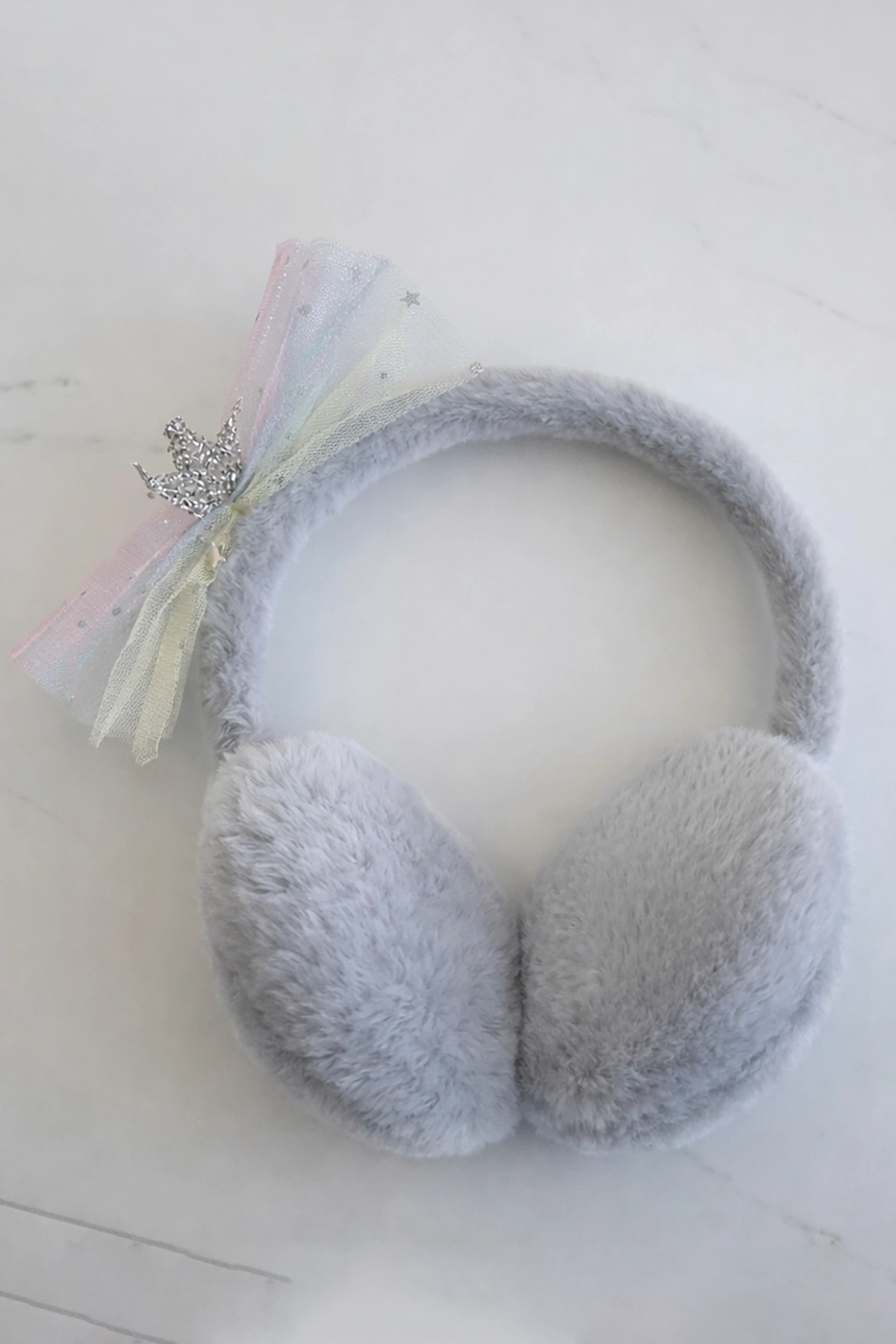 Gri Renk Kurdele Figürlü Peluş Kulaklık