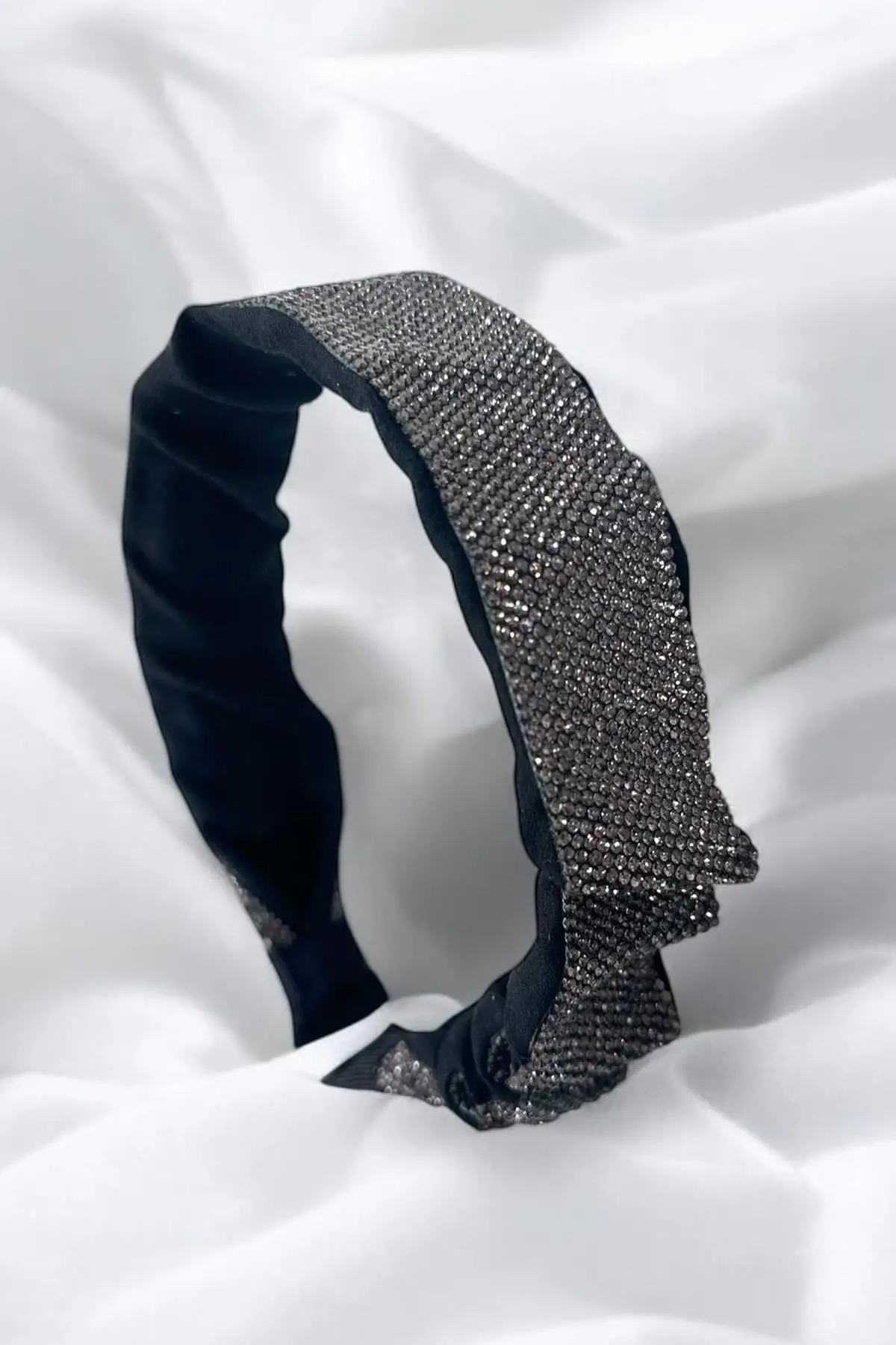Siyah Renk Taş Detaylı Büzgülü Taç