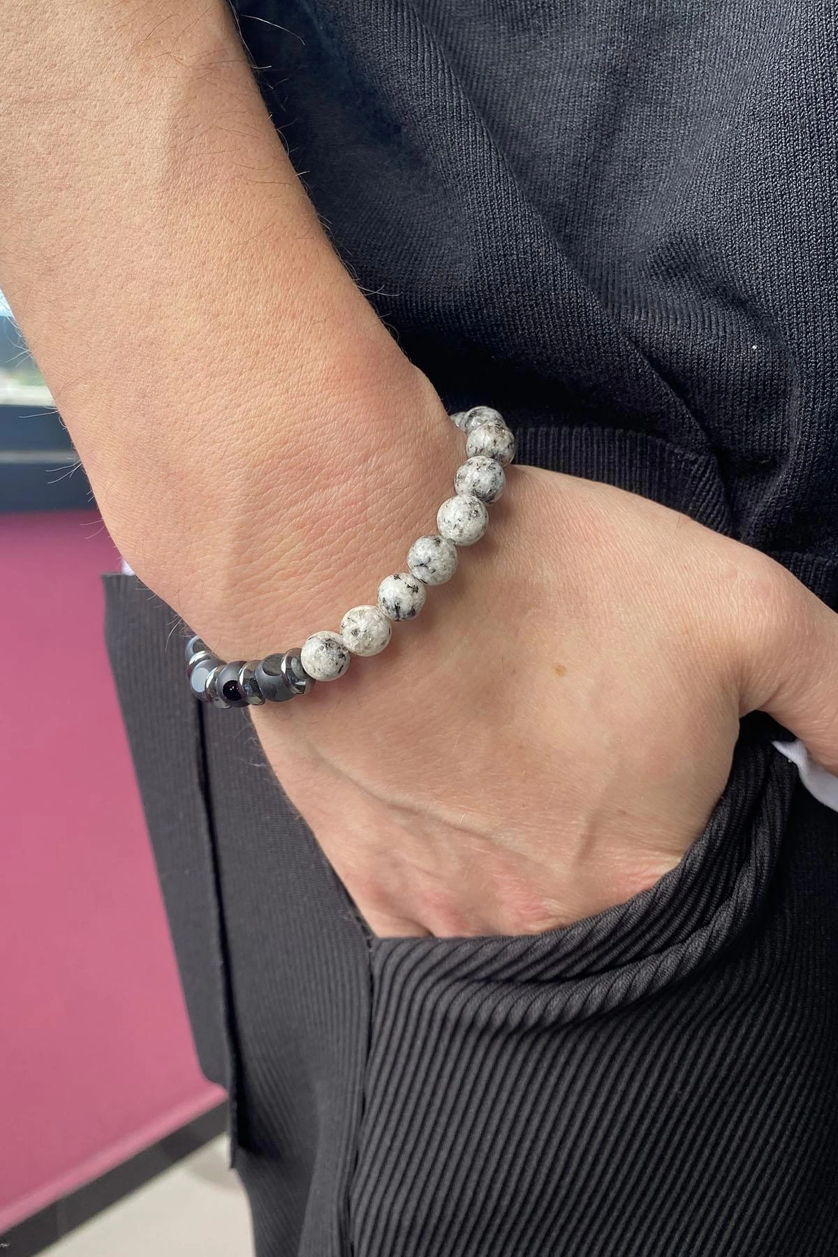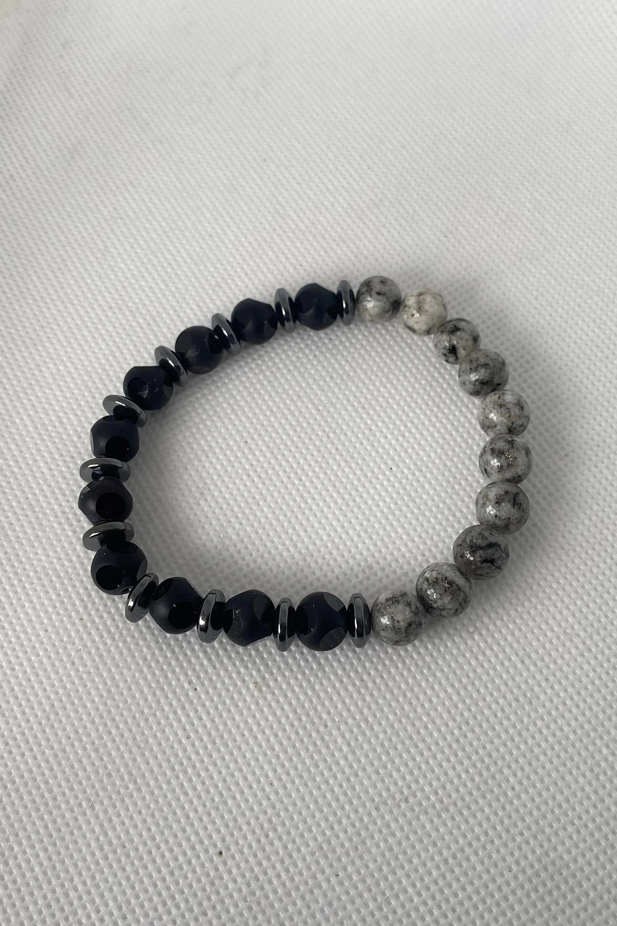 Gri Ve Siyah Renk Boncuk Detaylı Erkek Bileklik