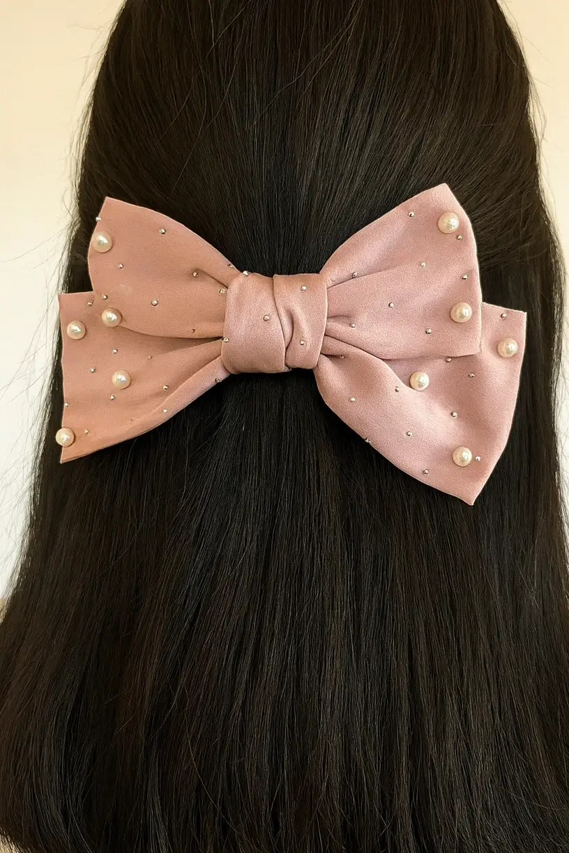 Gül Kurusu Renk Kurdele Figürlü İnci Detaylı Otomat Toka