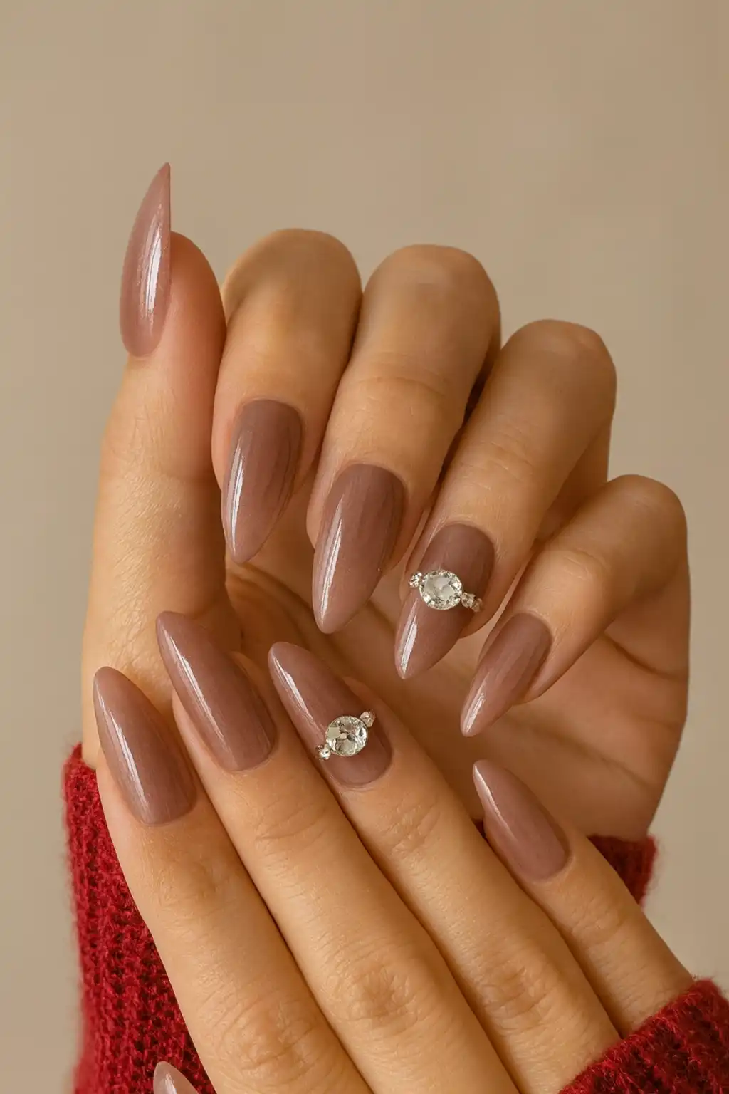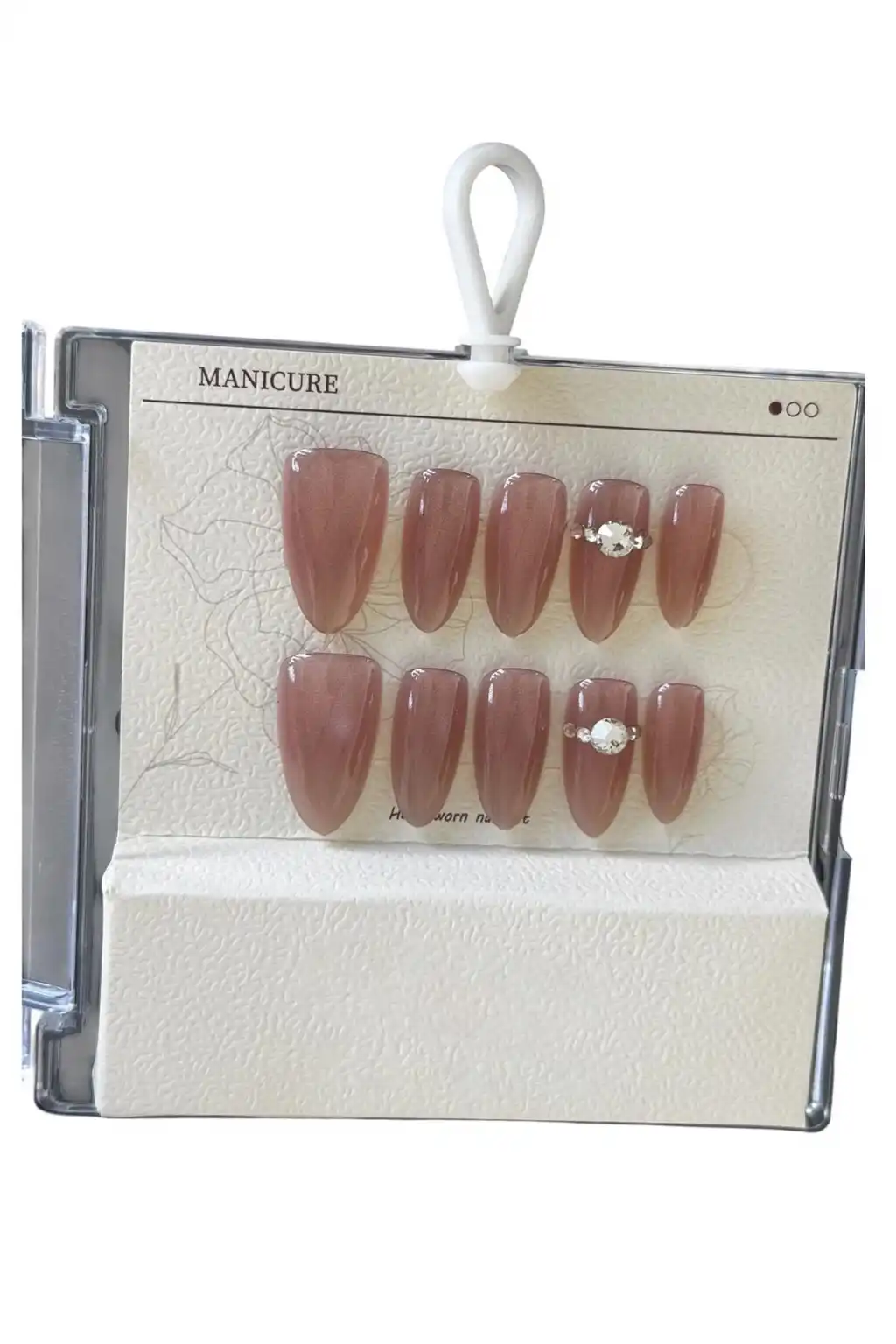 Gül Kurusu Renk Taş Detaylı Jel Tırnak Görünümlü 10'lu Takma Tınak Set (Yapıştırıcılı)