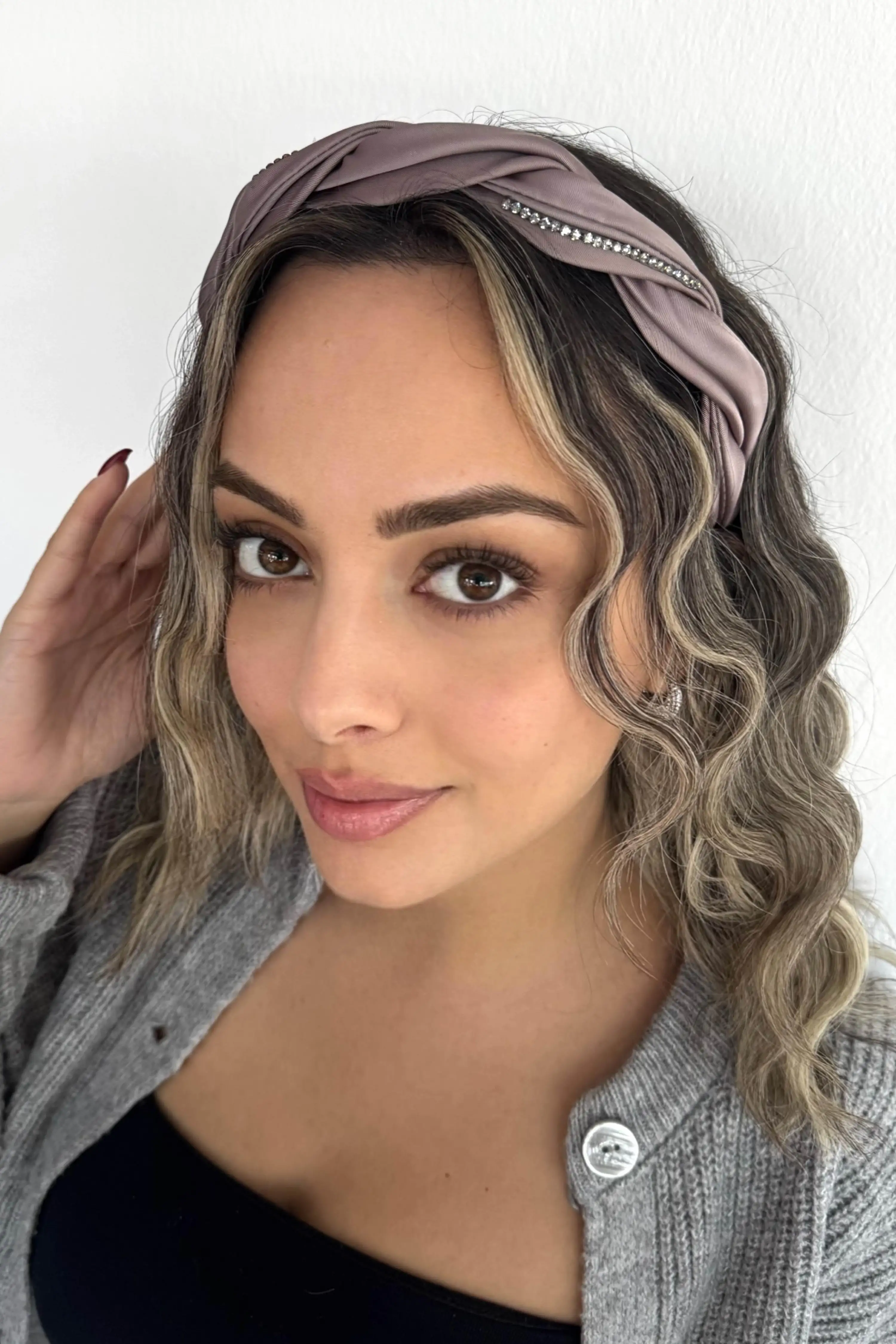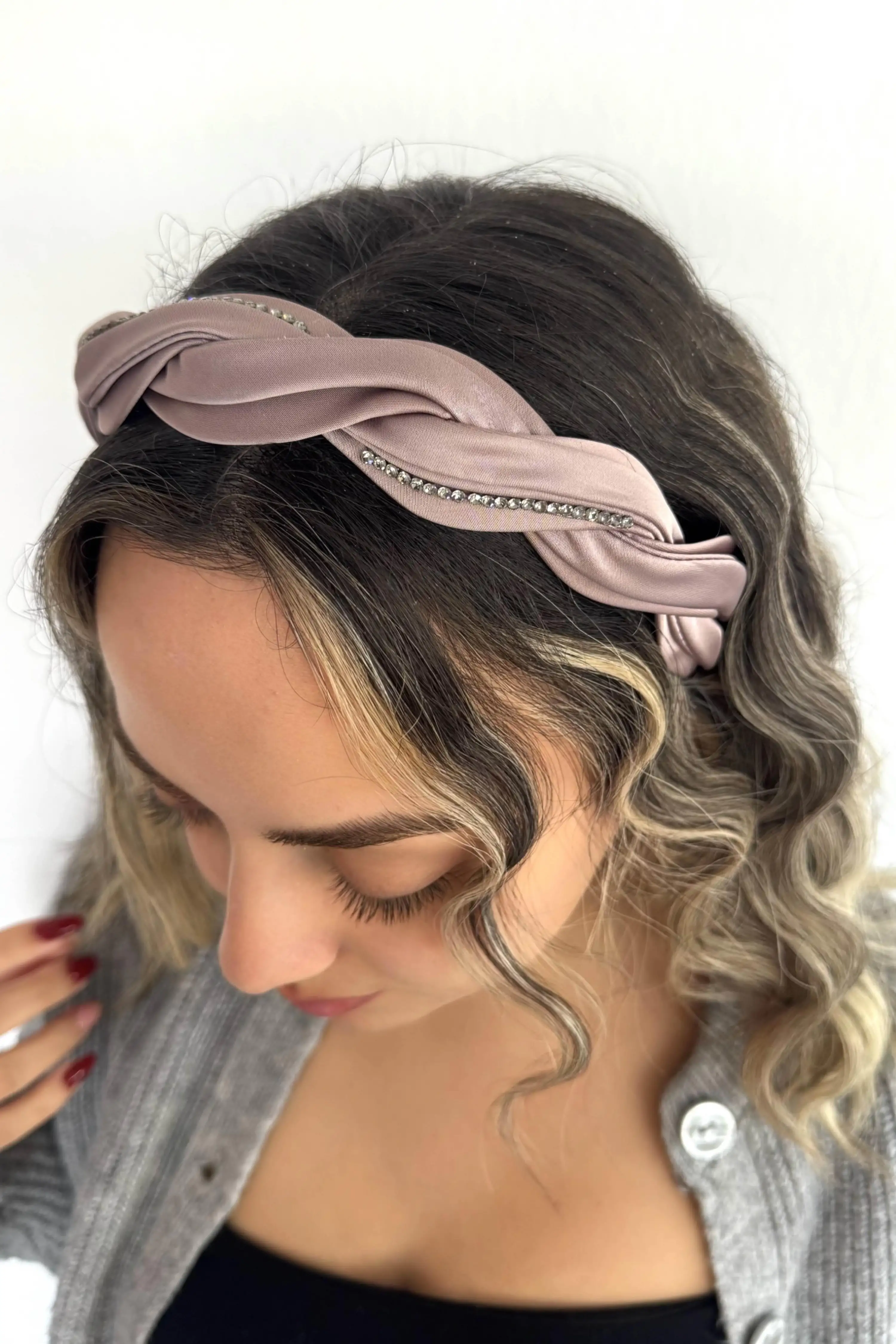 Gül Kurusu Renk Taş Detaylı Büzgülü Taç