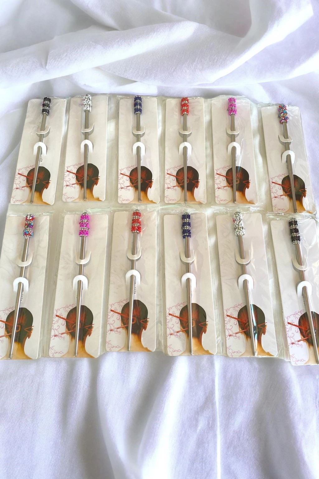 Gümüş Renk 12'li Taş Detaylı Topuz Kalemi