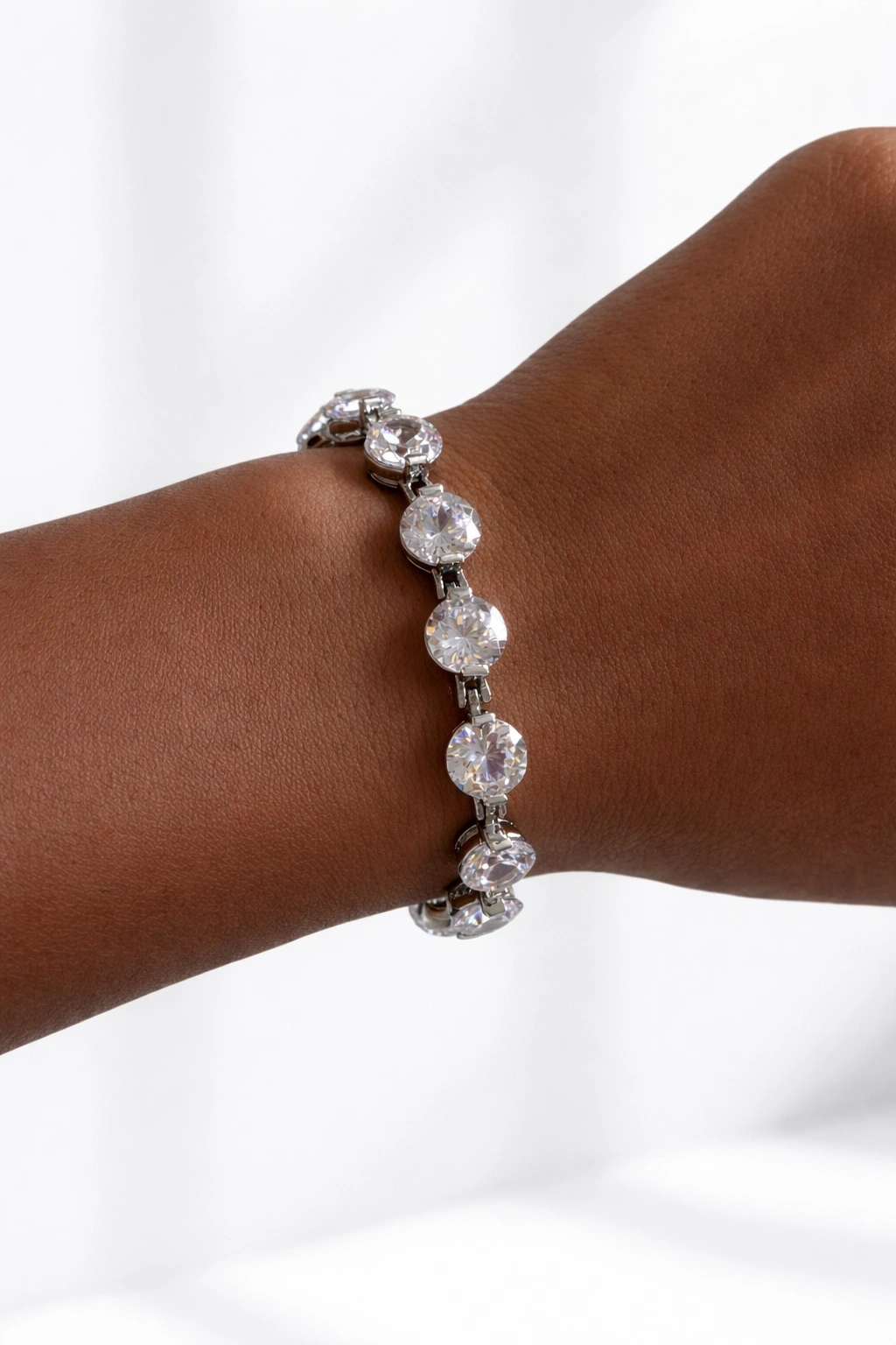 Gümüş Renk 14K Altın Kaplama Taşlı Bileklik