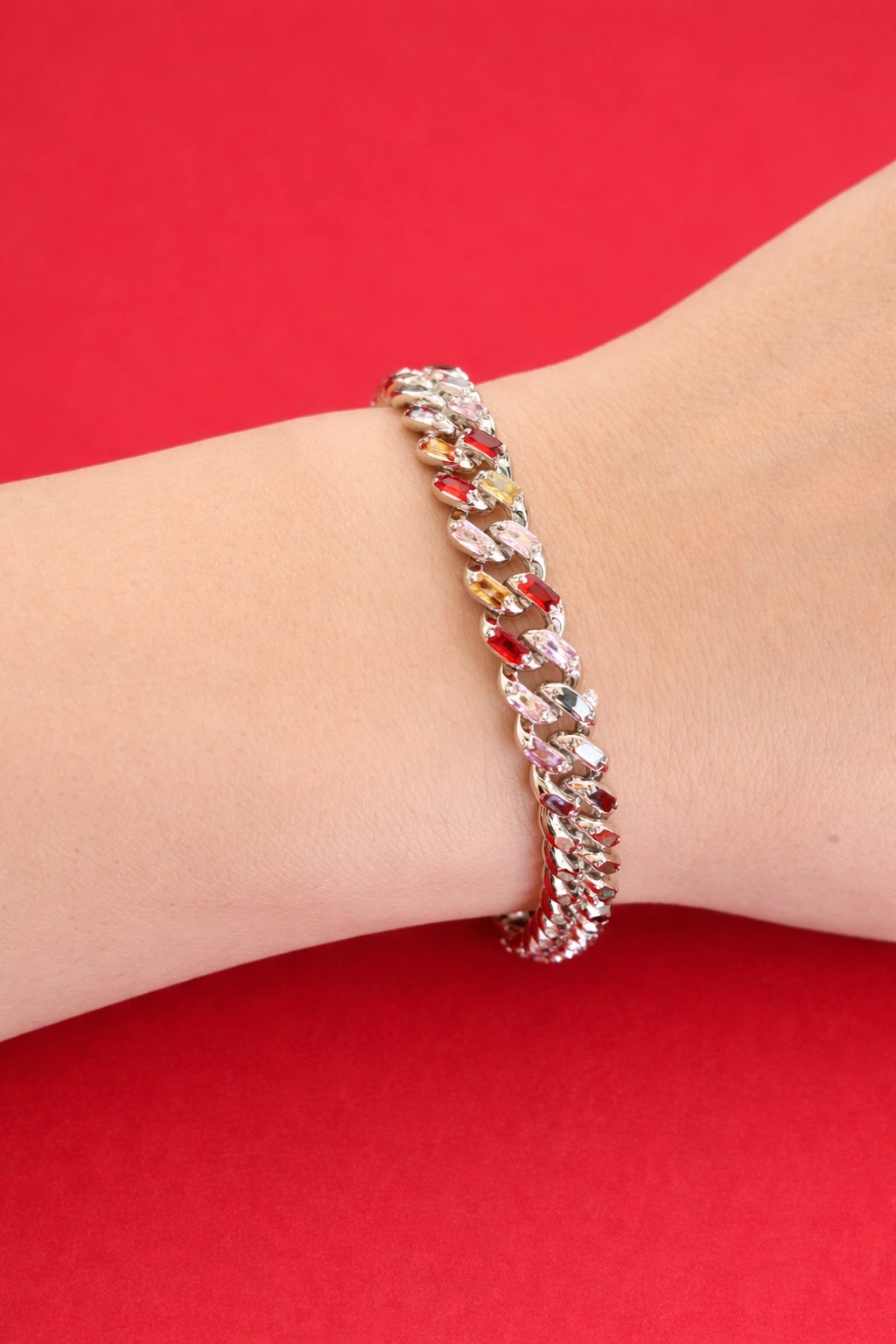 Gümüş Renk 14K Altın Kaplama Taşlı Zincir Bileklik