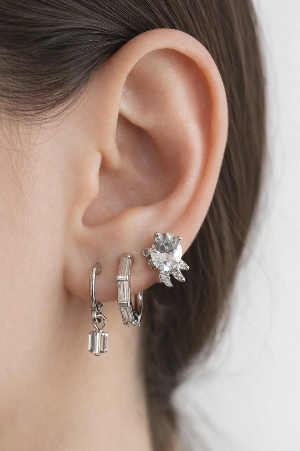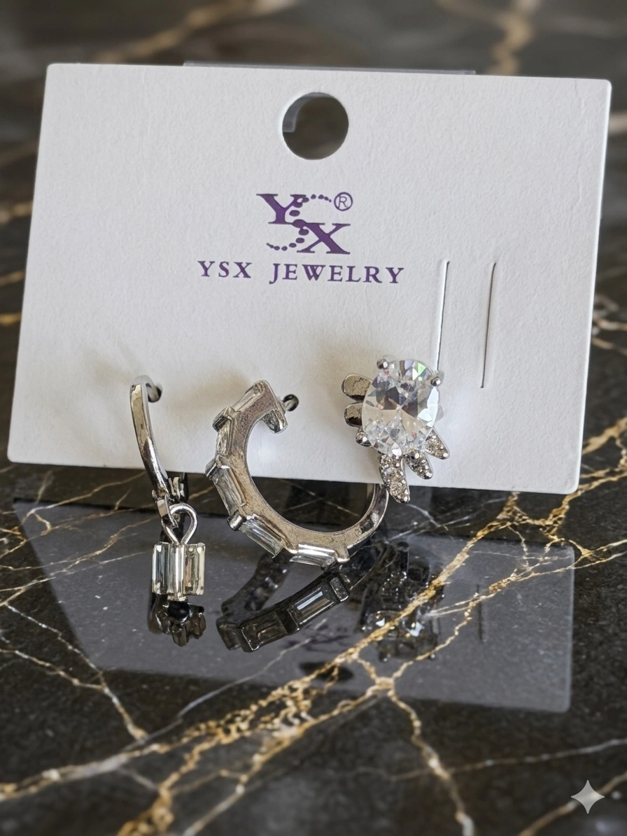 Gümüş Renk 3'lü Ysx Küpe Set