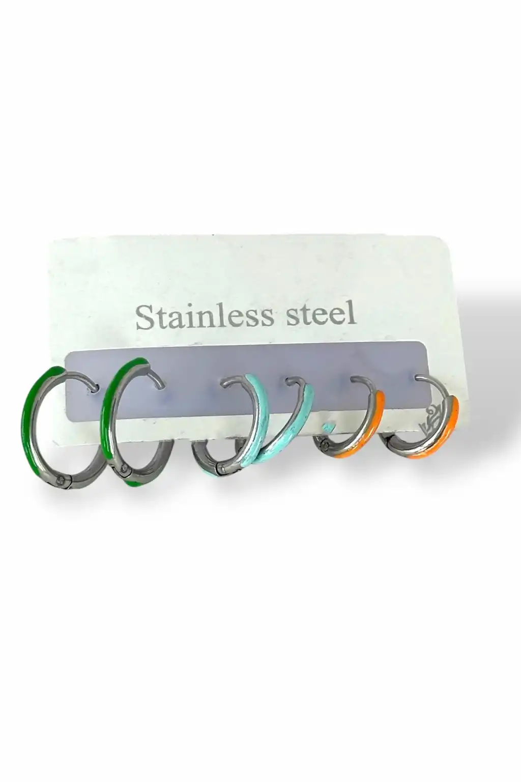 Gümüş Renk 6'lı Çelik Halka Küpe Seti