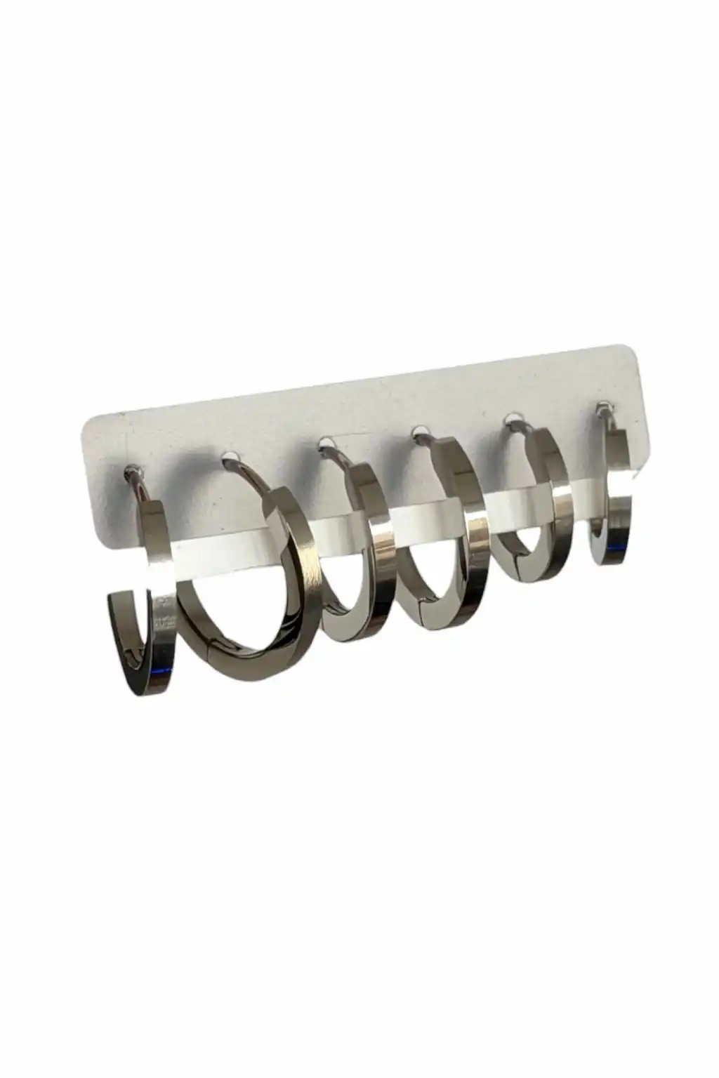 Gümüş Renk 6'lı Halka Çelik Küpe Set