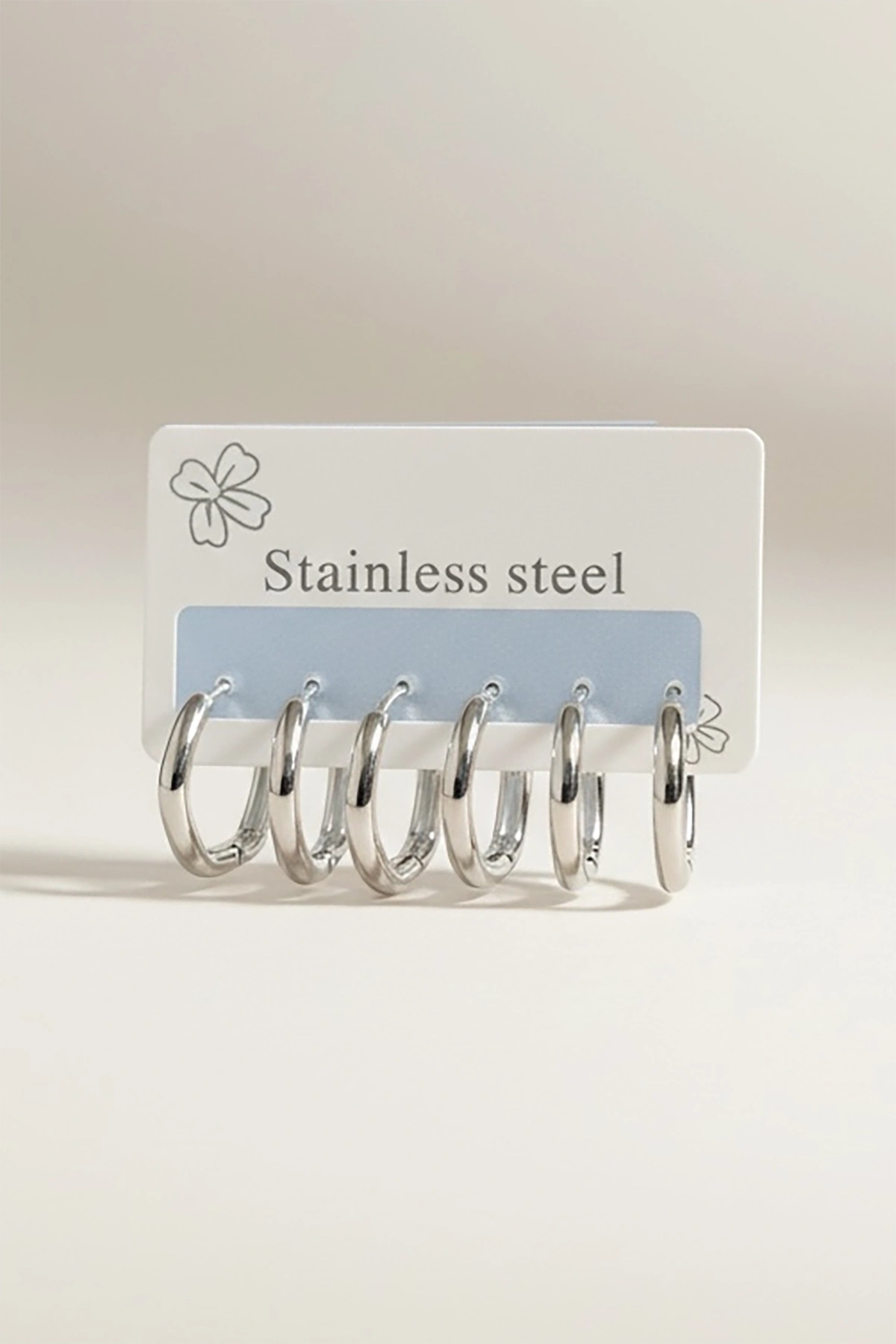 Gümüş Renk 6'lı Halka Çelik Küpe Set