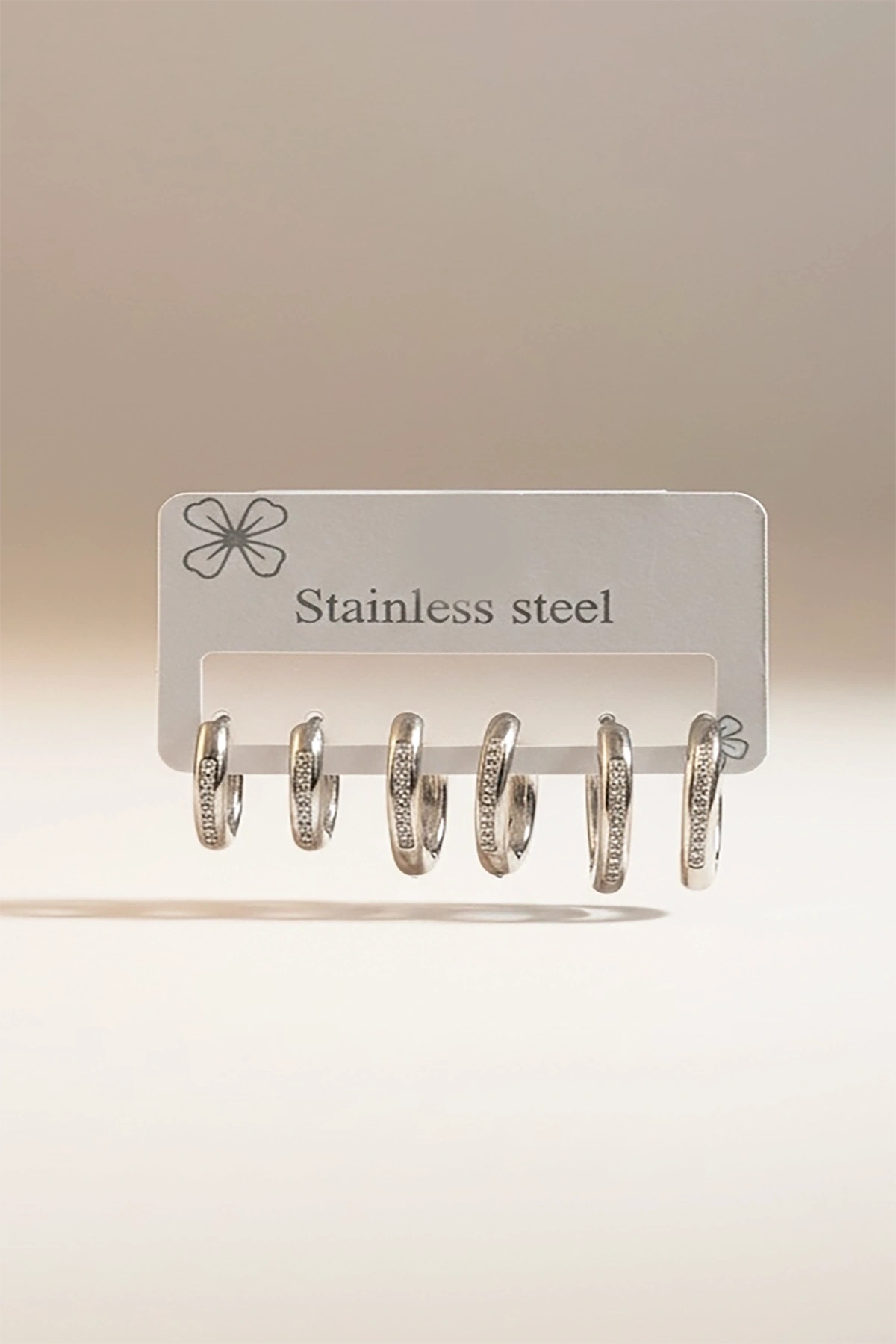 Gümüş Renk 6'lı Halka Detaylı Taşlı Çelik Küpe Set