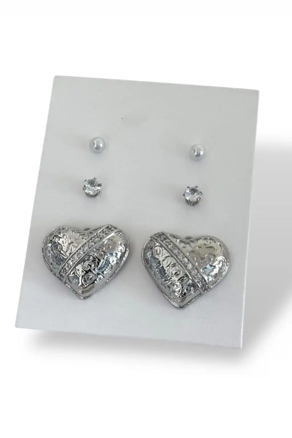 Gümüş Renk 6'lı Kalp Figürlü Çelik Küpe Set