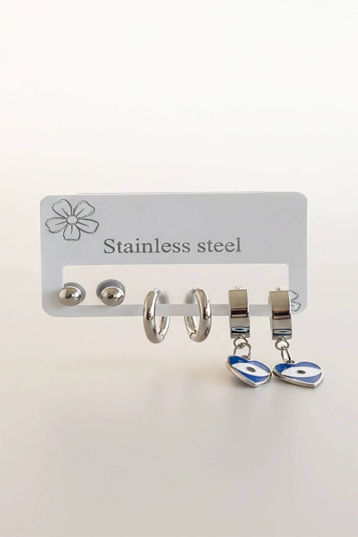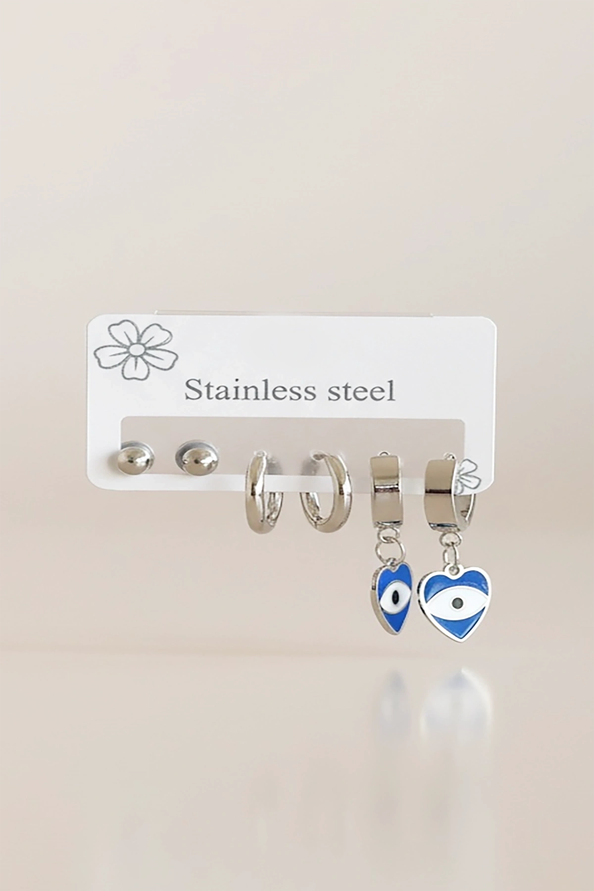 Gümüş Renk 6'lı Karışık Figürlü Çelik Küpe Set