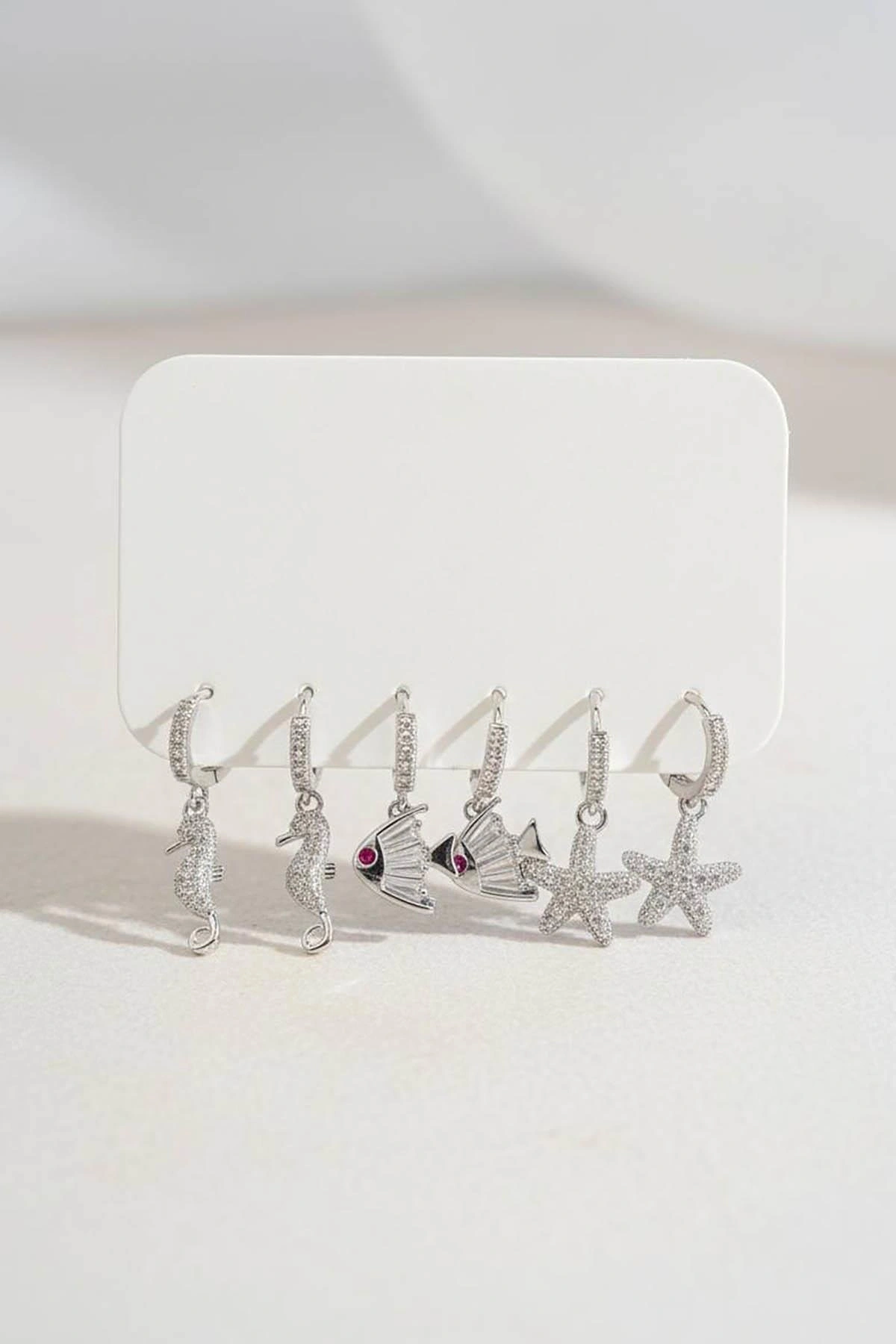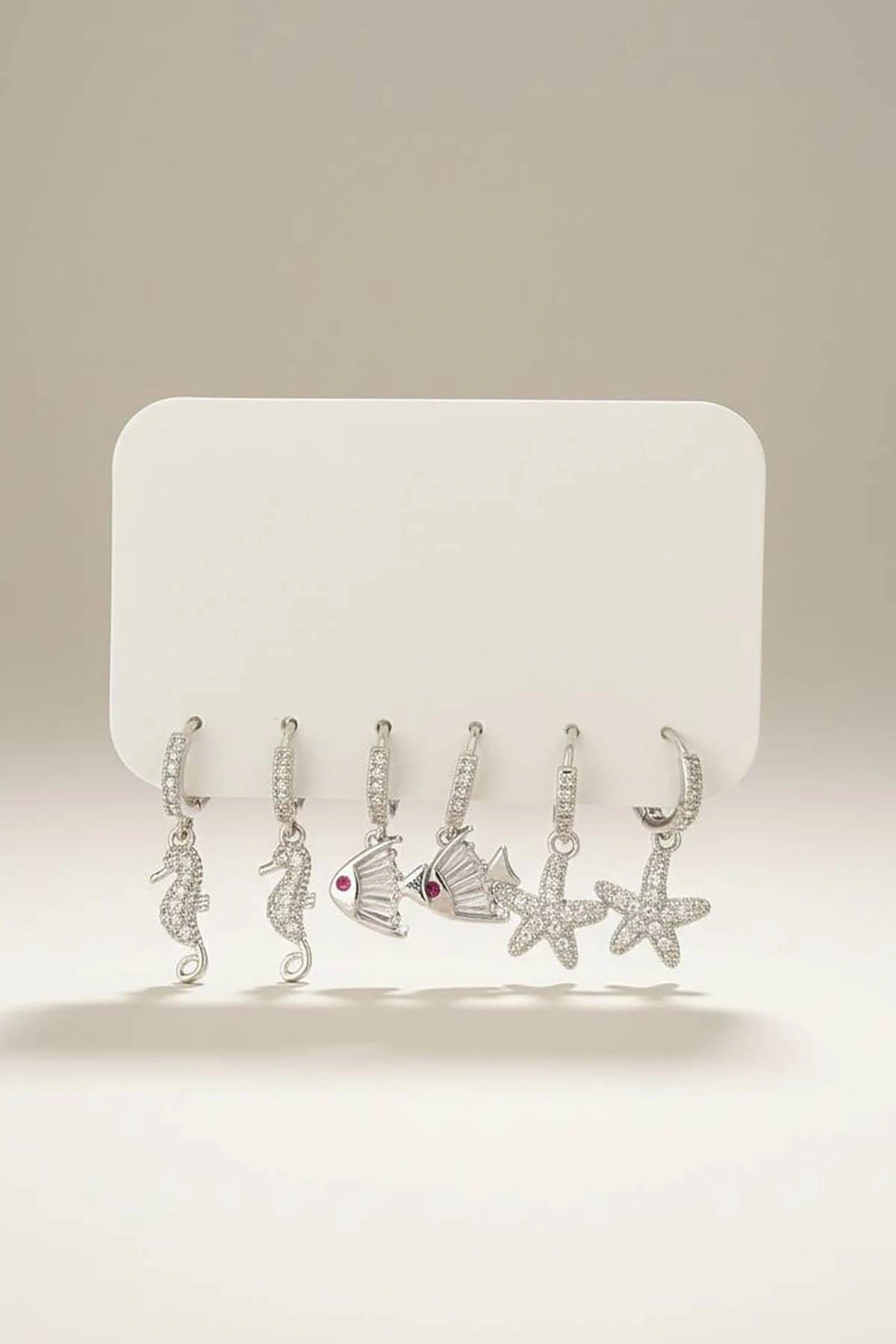 Gümüş Renk 6'lı Karışık Figürlü Set Küpe