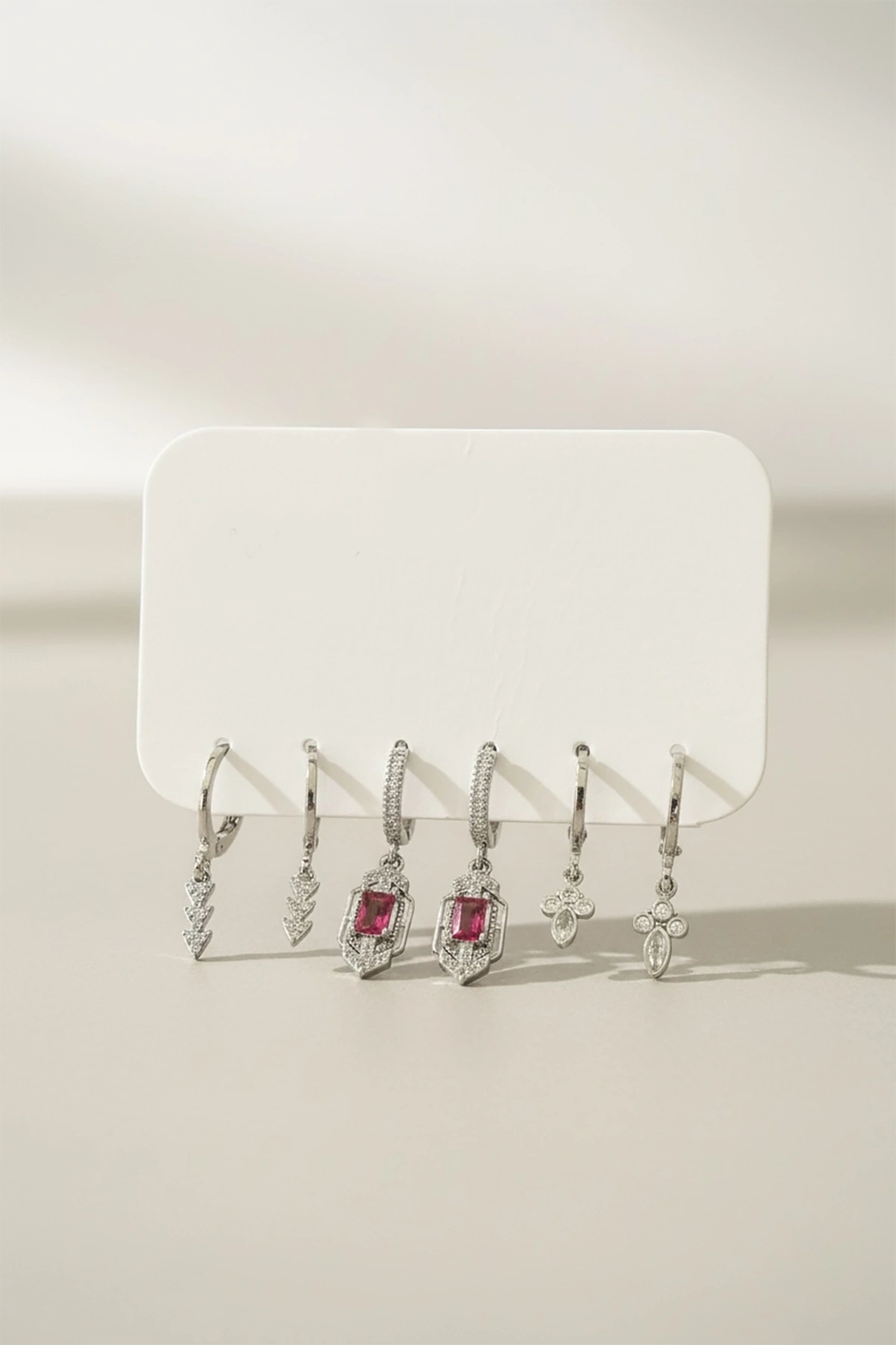 Gümüş Renk 6'lı Taş Detaylı Set Küpe