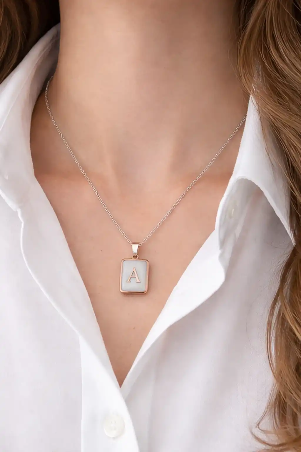 Gümüş Renk A Harf Çelik Kolye