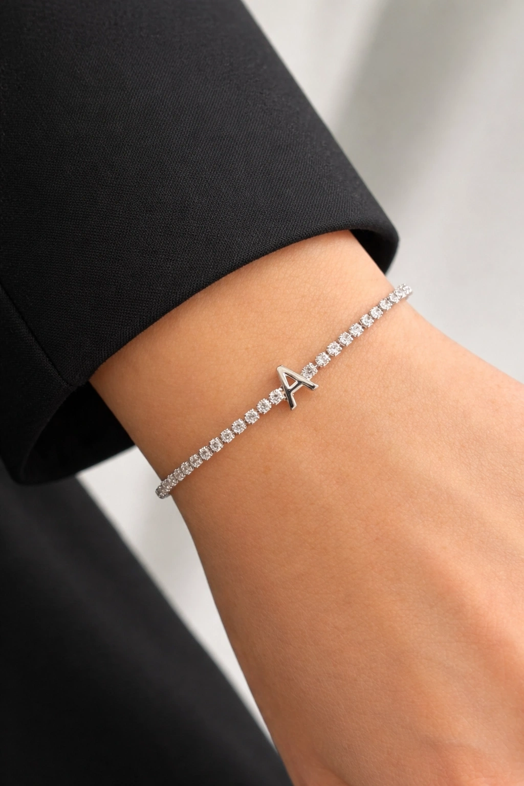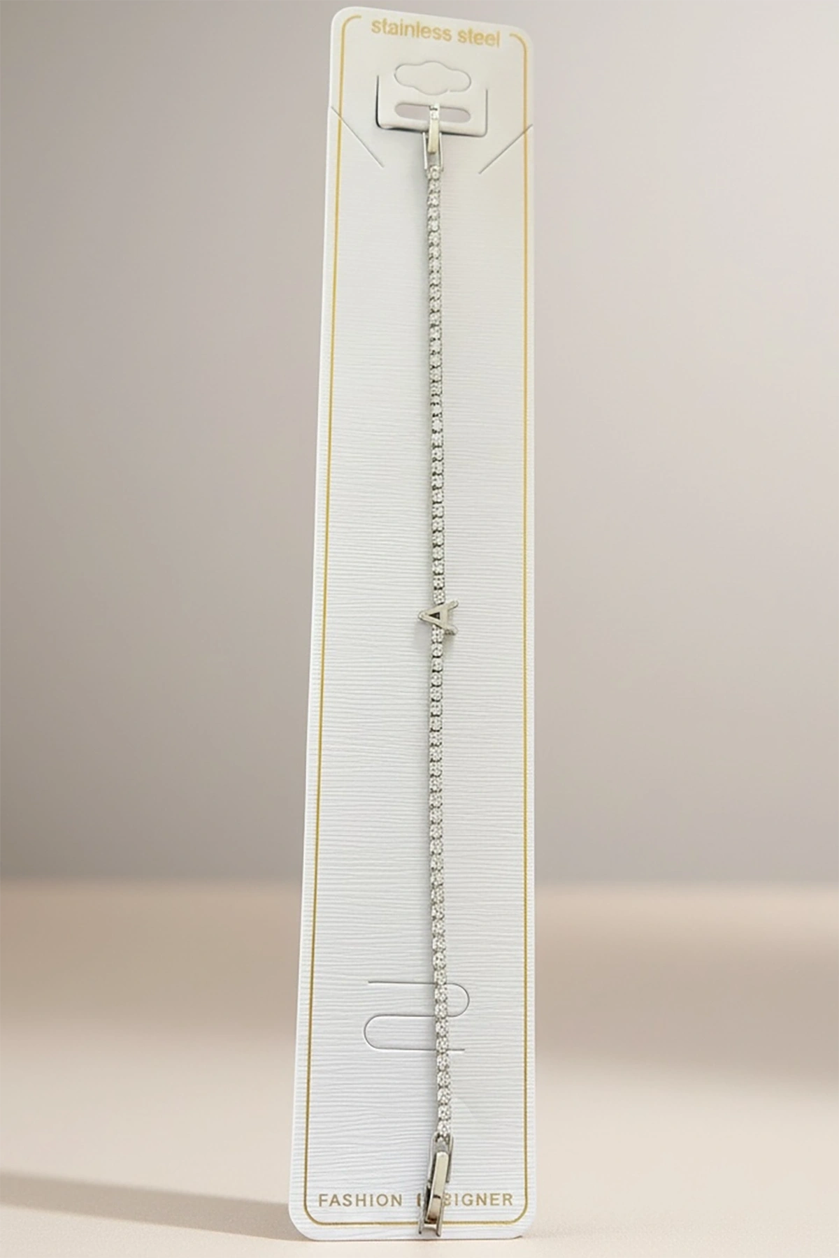 Gümüş Renk A Harfli Taş Detaylı Çelik Bileklik