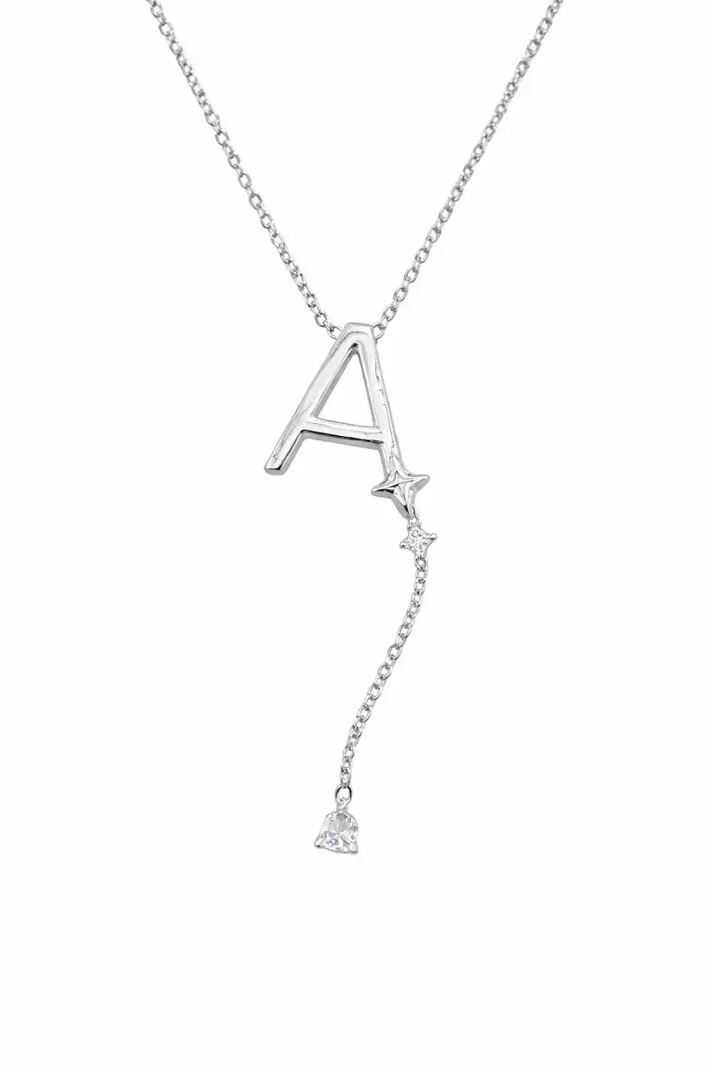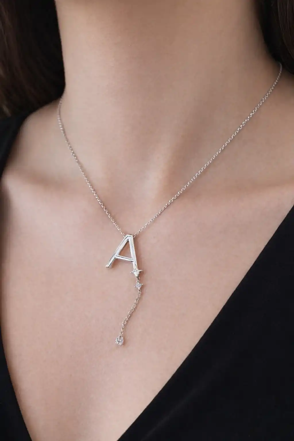 Gümüş Renk A Harfli Taş Detaylı Çelik Kolye