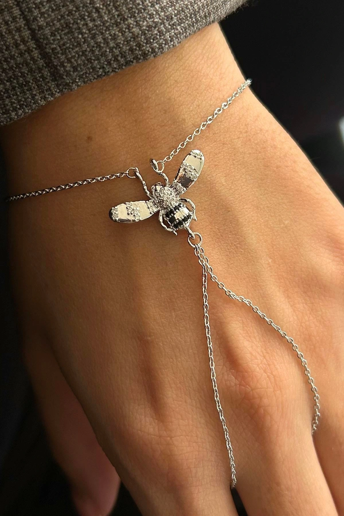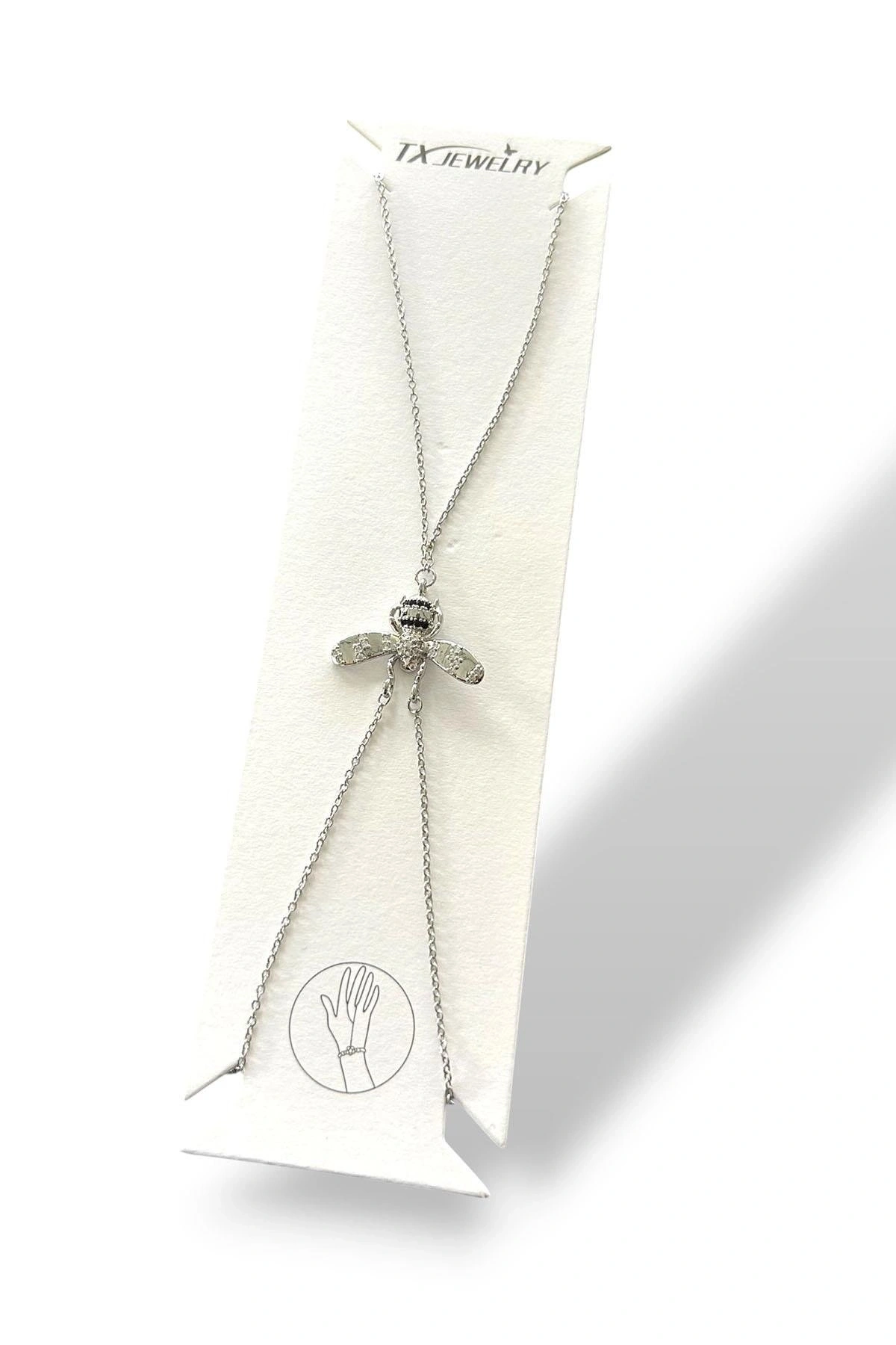Gümüş Renk Arı Figürlü Taş Detaylı 14K Altın Kaplama TX Şahmeran