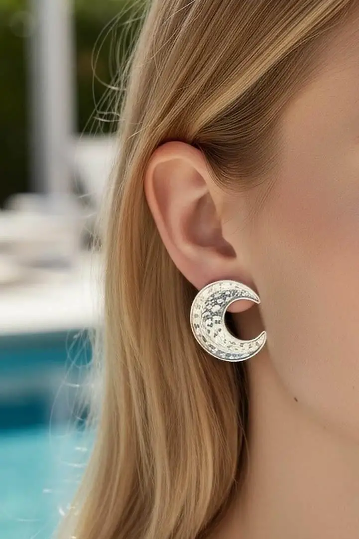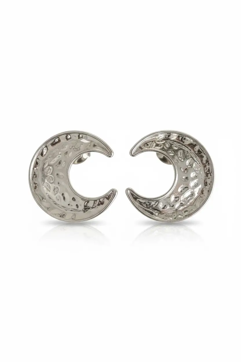 Gümüş Renk Ay Figürlü Çelik Küpe (Çift)