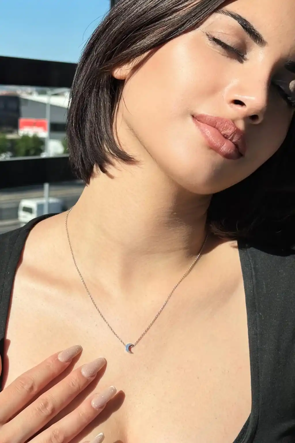 Gümüş Renk Ay Figürlü Kolye